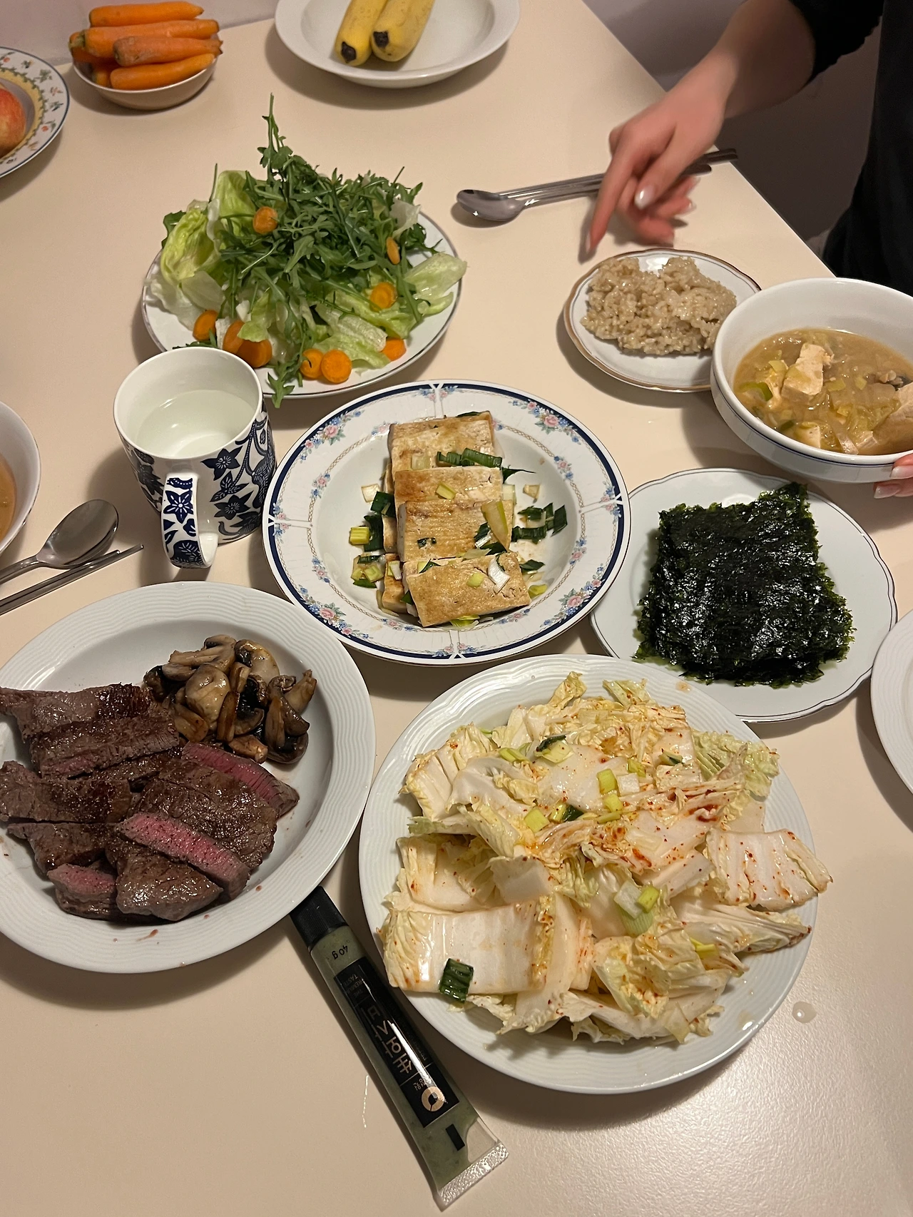 현미는 가져올까 고민하다 챙겼는데, 여기서 쌀을 사는 것보다 훨씬 맛있어서 좋았다. 마트에서 15,000원짜리 우둔살을 사서 무쇠팬에 구워 먹으니 부드럽고 든든했다.