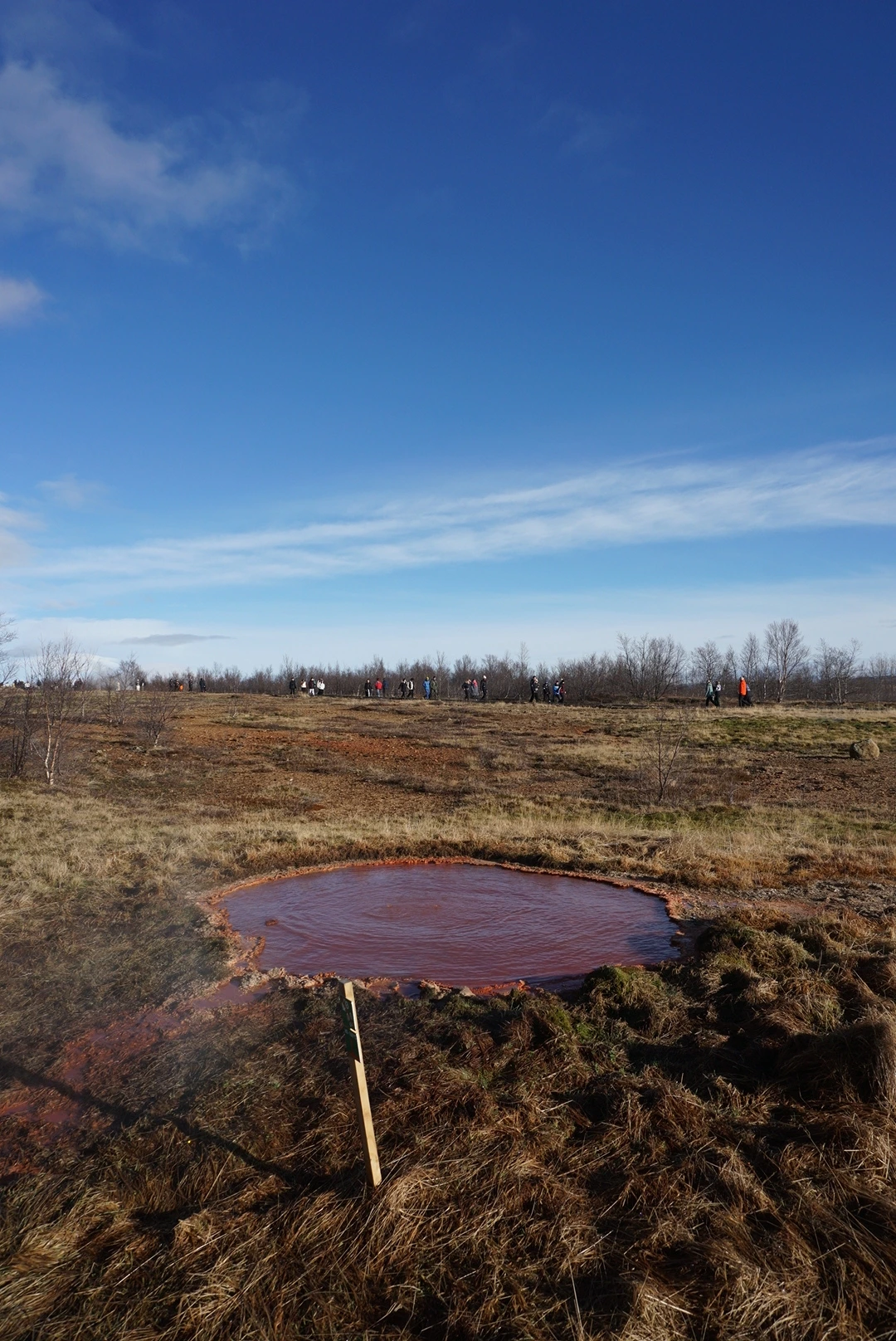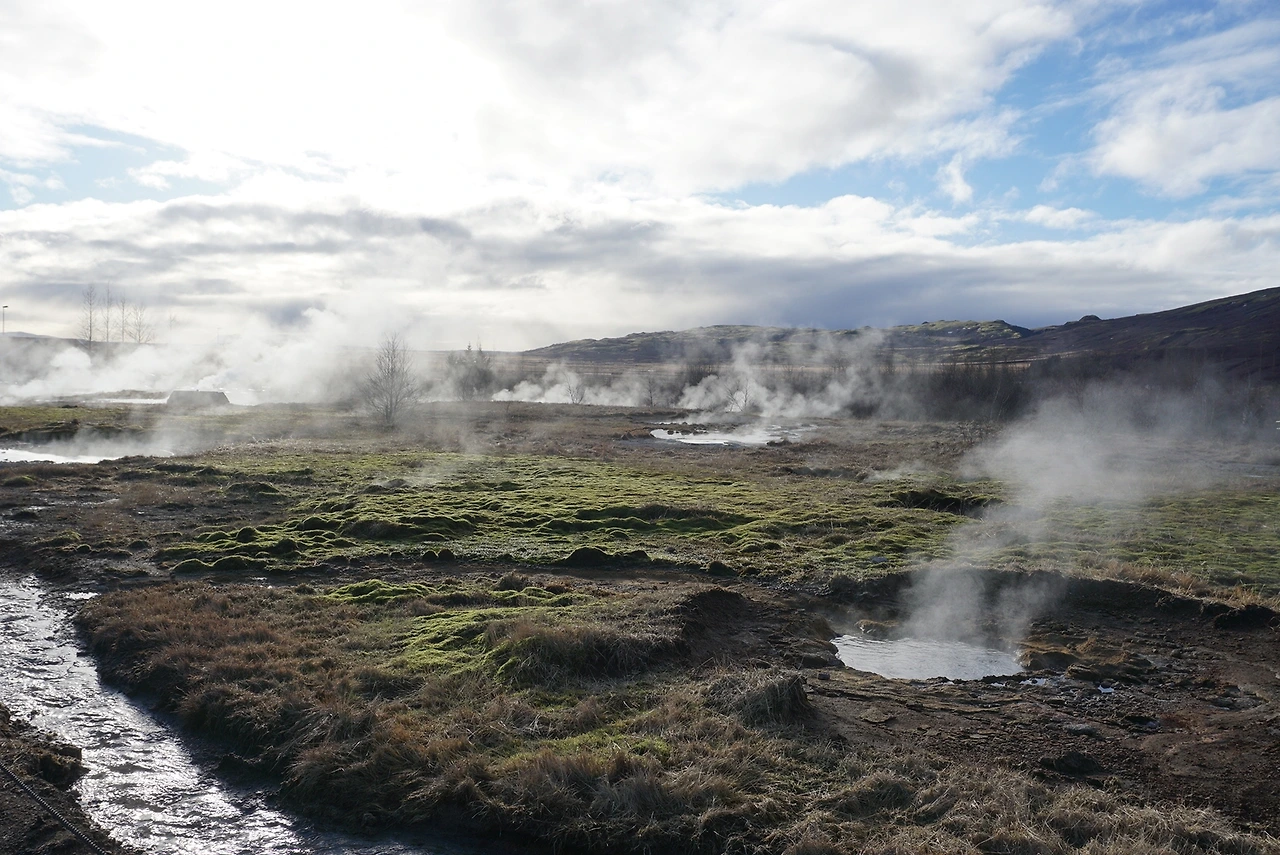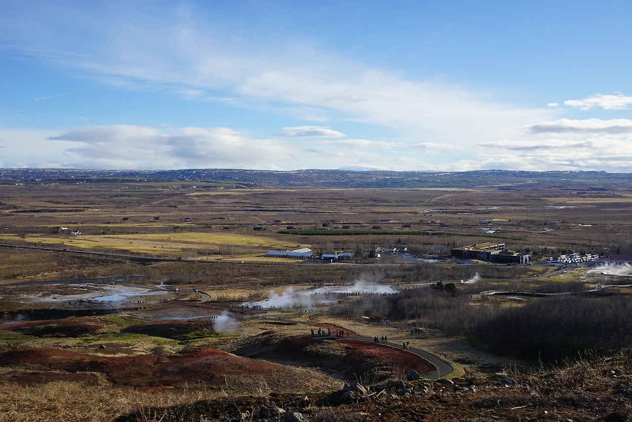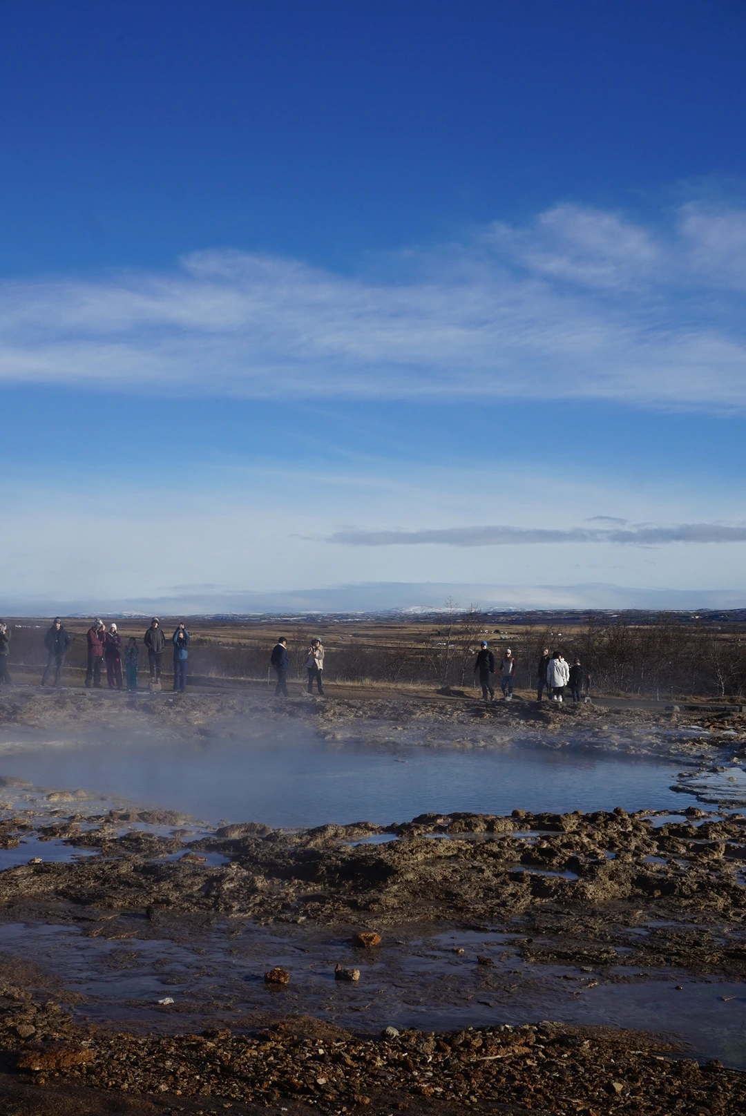 골든서클 두 번째 목적지는 게이시르! 이전에 옐로스톤에서 어마어마한 규모의 지열 지대를 봐서 엄청난 감동은 없었지만, 태초의 지구를 닮은 열기를 볼 수 있어 좋았다. 5분에 한 번씩 솟아오르는 간헐천과 부글부글 끓는 온천들이 가득했다.