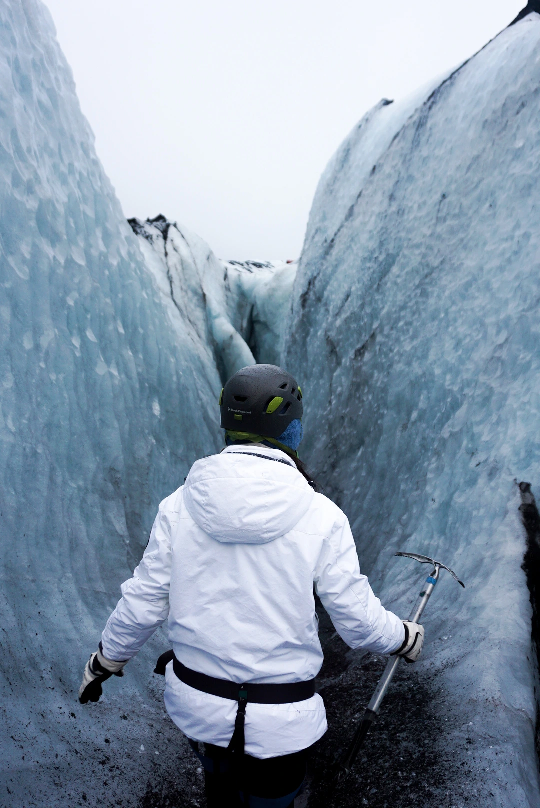 빙하 탐험 코스 중 하나는 엄청 깊은 크레바스에 들어가는 것. 얼음벽 아래로 내려가 멋진 낫을 들고 사진을 찍을 수 있다! 실제로 몇 미터에서 몇백 미터까지 한다는 크레바스 아래 들어가 있으니 진짜 모험을 하는 기분이었다.