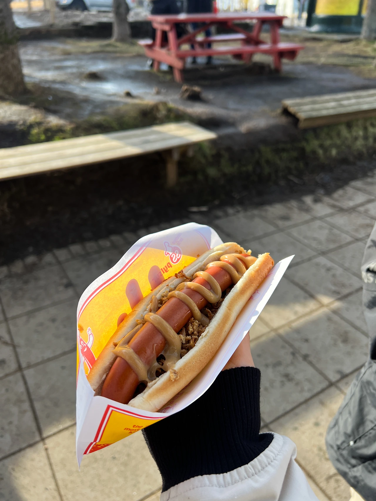 물놀이 후 자극적인 음식이 당기는 건 어느 나라에 있든 똑같나 보다. 우리 가족도 집에 가서 밥을 먹을까 하다가, 이미 한 번 다녀온 작은 핫도그 가게에서 점심을 해결하기로 했다.