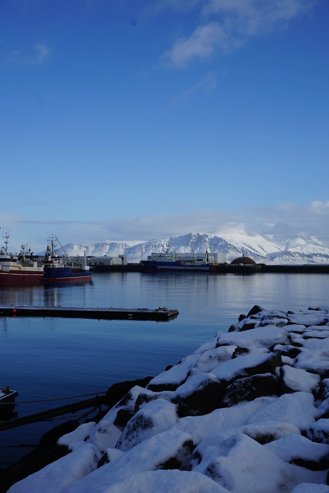 하루는 도시 끝까지 30분 정도 걸어 항구에 갔다. 눈이 펑펑 온 다음날이었다. 날씨가 워낙 투명해 먼 산이 바로 앞에 있는 것처럼 가까웠다.