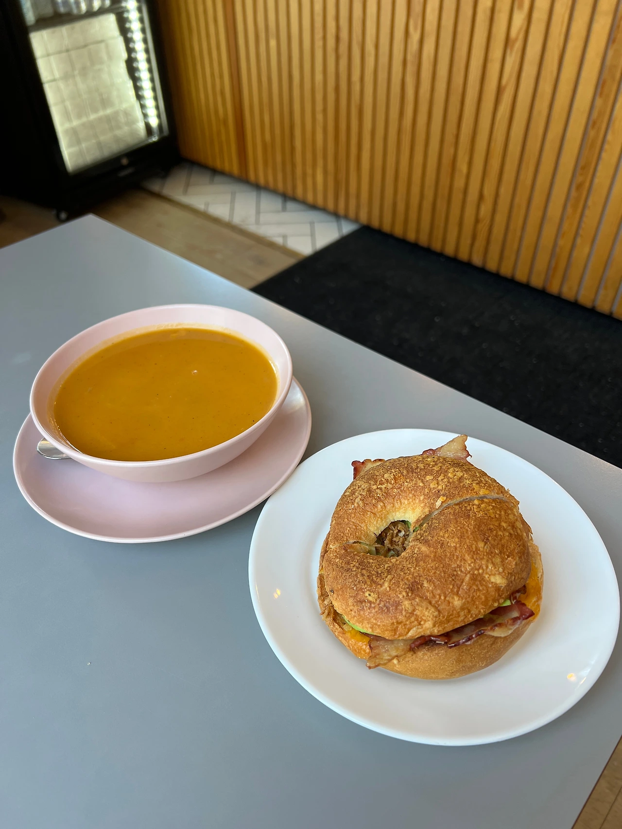혼자 3시간가량 물놀이를 신나게 한 후 배가 너무너무 고팠다. 또 오는 길에 들르고 싶은 가게는 어찌나 많은지! 마트에서 간단히 사 먹을까 하다가 그렇게 먹어도 2만 원이 넘어, 결국 동네에서 평점 좋은 베이글 가게에 들어갔다. 몸이 차니 뜨끈한 수프 한 그릇과 베이글을 시켰는데 무려 4만 원... 이렇게나 비싸리라고는 생각 못했지만 결국 눈물을 머금고 돈을 냈다. 맛은 정말 건강한 맛이었다!