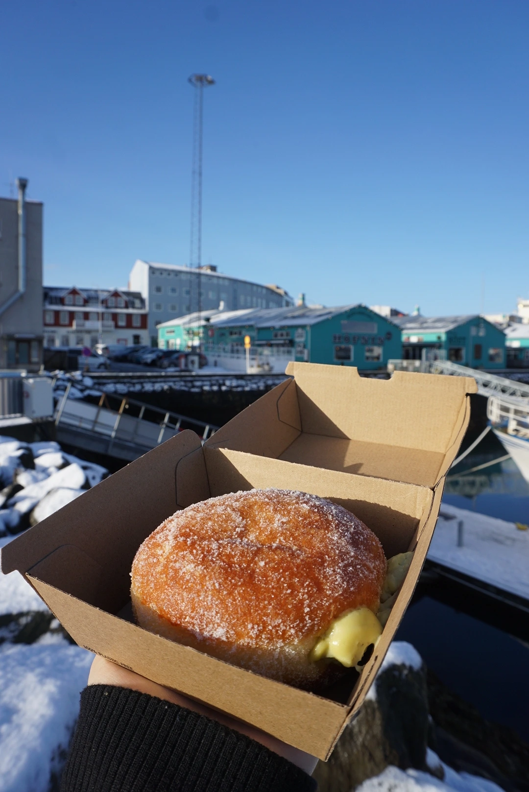 항구 바로 앞에는 줄 서서 먹는 도넛 집이 있었다. 설탕이 가득 묻은 큰 도넛이었는데, 제일 좋아하는 피스타치오 맛이 있어 8천 원을 내고 하나를 샀다. 필링이 엄청나게 가득 들어 있고 그렇게 달지 않아 정말 맛있었다. 이 아름다운 풍경을 보며 바다 앞에서 혼자 먹는 도넛이라니!