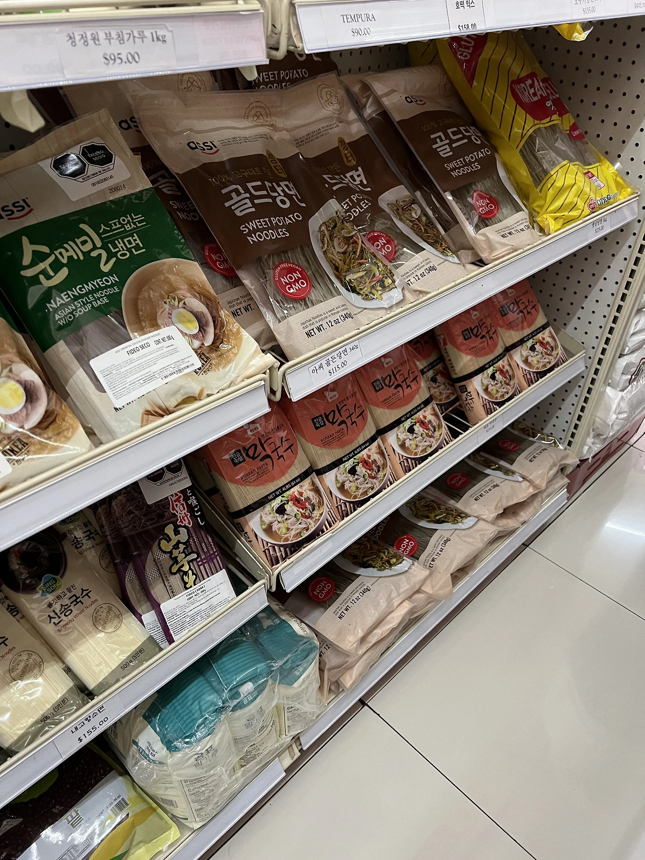 우리는 30분 정도 걸어서 AJU라는 한인마트로 향했다. 사진으로 보면 알겠지만, 눈 돌아가는 한식 재료들이 정말 한가득이다! 고추장, 쌈장부터 부침가루, 각종 양념, 라면과 한식 과자까지 다양했다. 캐나다 물가랑 비교했을 때에도 그렇지 비싸지 않은 가격이라, 여행하는 내내 사용할 양념들 위주로 쇼핑을 했다.