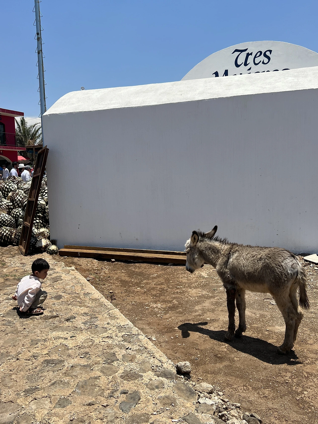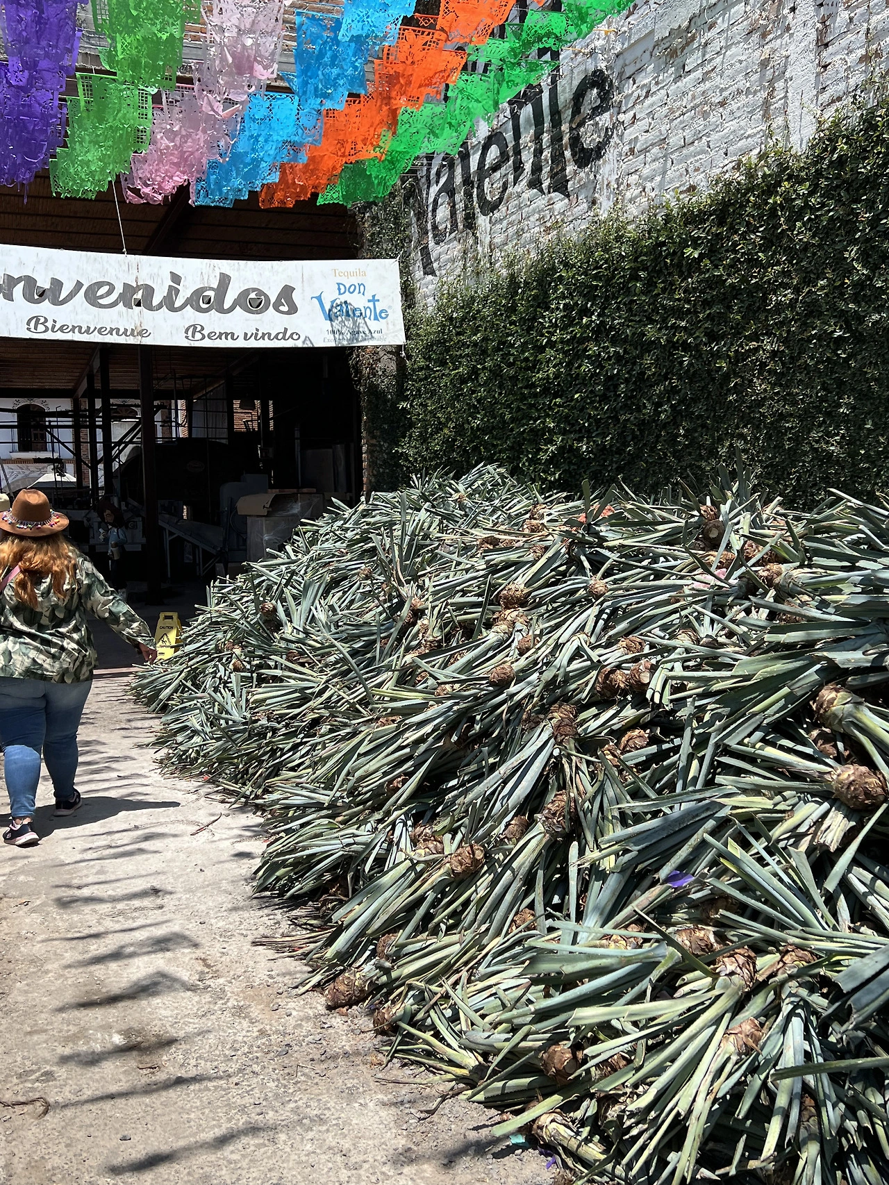 돈 발렌테는 가족들이 전통적인 방식으로 데낄라를 만드는 증류소다. 입구에 들어가자마자 데낄라 원료인 뾰족뾰족한 아가베가 가득 쌓여 있다. 테킬라를 만들기 위해 농장은 아가베를 최소 6년 이상 재배해야 한다. 독특하게도, 우리가 지금 머물고 있는 멕시코 할리스코 지역에서만 아가베를 재배할 수 있으며 잎은 모두 잘라내고 중심부만 사용한다. 가시를 다 잘라내고 남은 중심부터는 마치 파인애플처럼 생겼다! 그래서 실제로 이름이 스페인어로 piña, 파인애플이다.