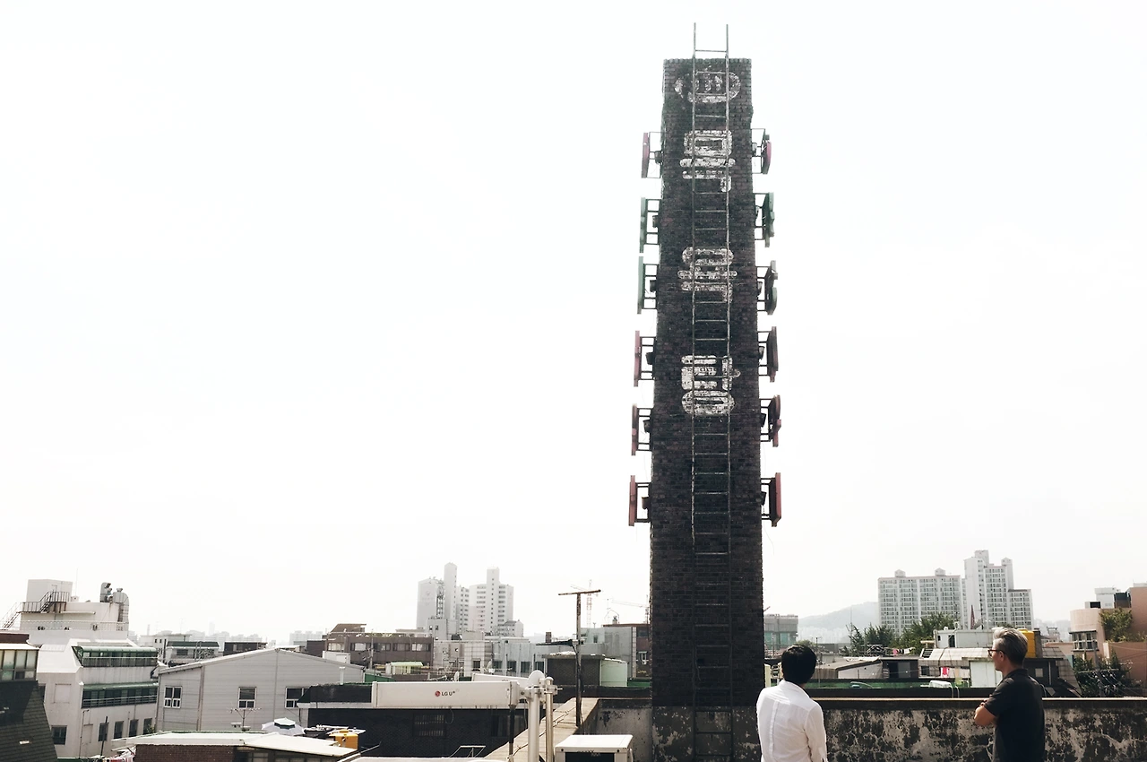 땀을 흘리며 운수회사를 지나치고, 철공소와 구두공장과 구두가게와 알 수 없는 크고 작은 작업실과 공장을 지나쳤다. 그러다 보니 이마트가 나타났고, 학교가 나왔고, 골목에 자리한 시장을 만났다. 스마트폰 내비게이션에 분명 위치를 찍고 가는 길이었지만 자주 보진 않았다. 어차피 초행길, 조금은 길을 잃어도 좋았다. 순간 이동해서 공간만 보는 것은 흥미가 없다. 동네도 함께 보고 싶었다. 동네를 돌다 보니 어느 순간 건물 사이로 목욕탕 굴뚝이 보인다. 내비게이션을 껐다. 오래전부터 저 굴뚝이 사람들에게 그러했듯이, 우리도 굴뚝을 보며 걸었다. 그렇게 굴뚝 그림자를 쫓아 돌다 굴뚝이 더 이상 보이지 않는다며 당황한 순간, 찾던 건물 바로 앞에 있다는 걸 알게 됐다. 굴뚝 바로 밑에선 굴뚝이 잘 보이지 않는 법이다.