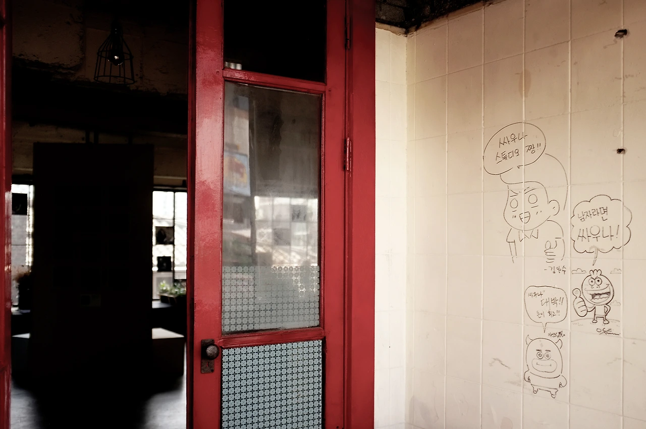 보일 듯 말듯 숨은 불친절한 간판과 행사 포스터 하나가 우리를 소심하게 반겨주었다. 그리고 녹슨 계단. 뭐하는 곳인지 알고 찾아가는 우리도 선뜻 오르기 주저되는 계단이 건물 벽을 따라 설치되어 있었다. 안전을 위해 계단을 보강했다고 들었지만 신뢰가 가지 않았다. 어디를 수선했는지 잘 눈에 띄지 않은 탓이다. 오랜 세월 녹슬어 있었을 기존 계단과 이질감이 들지 않도록 완벽하게 보정을 했거나, 계단을 불안해하는 우리를 위해 사장님이 던지신 농담, 둘 중 하나였을 테지. 어쨌든 우리는 떨어지지 않고 무사히 3층에 올라갈 수 있었다.