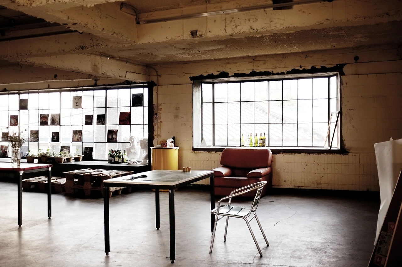 뜨거운 한 여름 햇볕과 온기가 창을 타고 가득 들어왔다. 예전 남자 목욕탕이던 이 곳은 한때 구두 공장으로 변신했다가, 지금은 스튜디오 작업실로 탈바꿈했다. 그들은 강남에서 이곳으로 옮겨왔다. 강남에 있는 흔해빠진 스튜디오를 벗어나 조금은 색다른 공간을 원했고, 이왕이면 사람들과 어울릴 수 있는 곳이었으면 좋겠다고 생각했다. 애초부터 목욕탕을 생각하며 찾아 다닌 것은 아니었다. 그렇게 4달간 골목 골목 부동산을 돌다 이곳을 만났고, 목욕탕 굴뚝과 창 밖 풍경에 반해 결정하게 된다. 지난 겨울이었고, 추운 겨울 내내 망치를 두드리며 공간을 다듬었다.