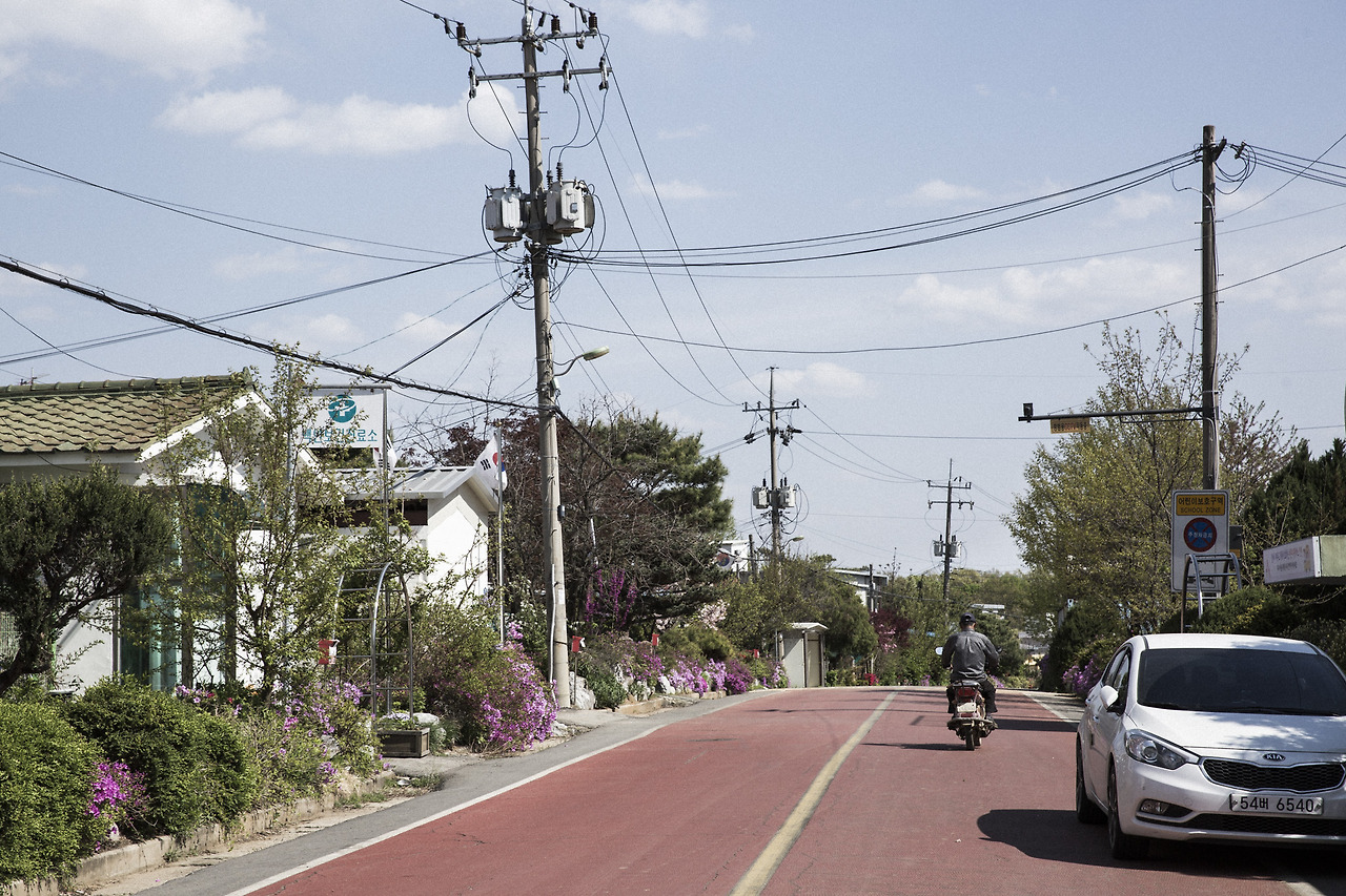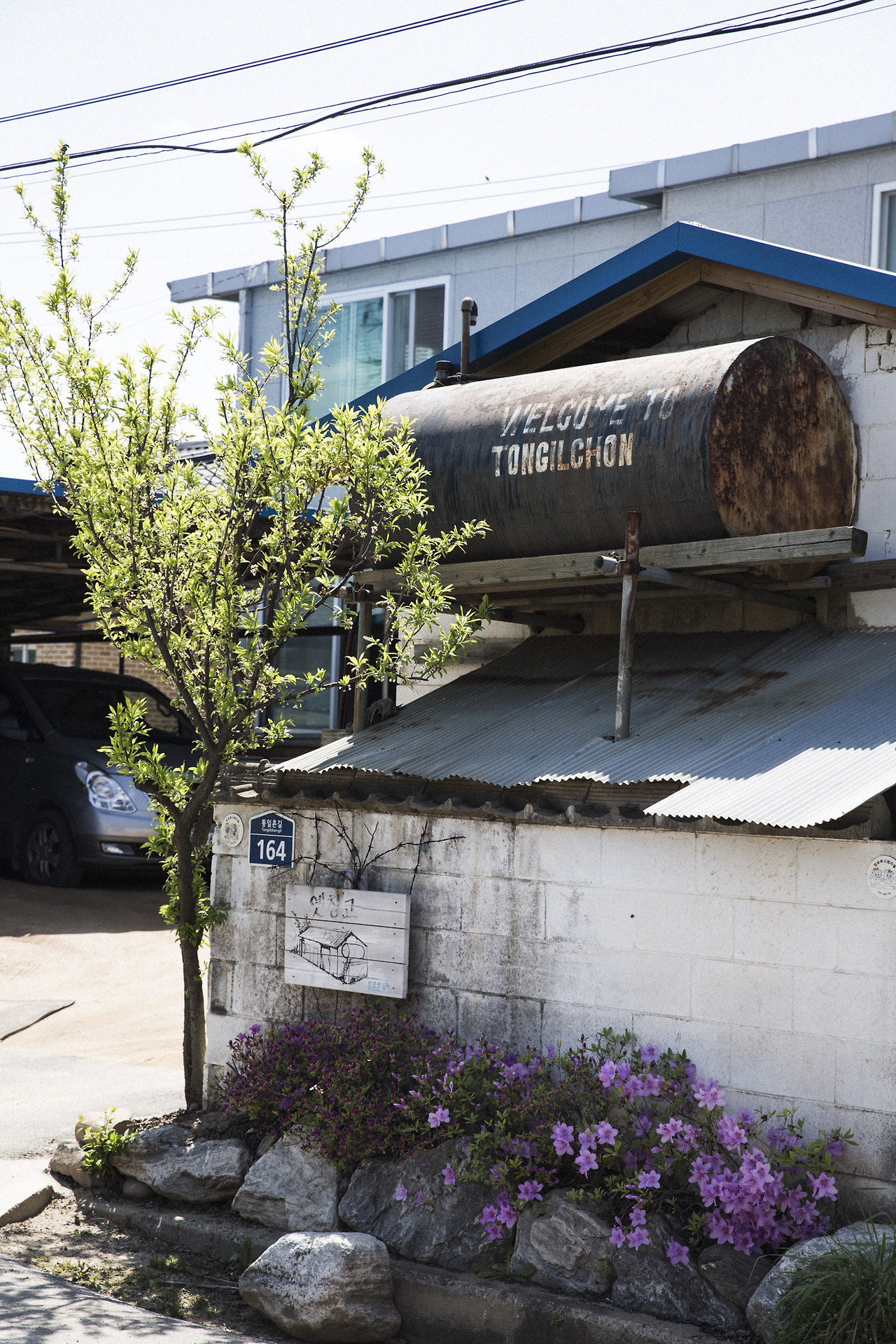 식당에서 밥을 먹고, 통일촌 마을을 한 바퀴 돌았다. 이곳 통일촌은 민통선에 위치한 마을 중 하나이다. 민통선(民統線), 교과서나 신문에서만 보았던 이름. 비무장지대 남방 한계선에서 5~20km에 지정된 '민간인통제구역'. 민간인 통제 구역이라서 그런지, 아니면 평일이라서 그런지 마을에는 인적이 드물었다. 마치 드라마 세트장처럼 잘 정돈된 마을은 세상모르게 평화롭다. 집집마다 걸려있는 태극기는 봄 볕에 일광욕을 하고, 우체통과 강아지는 민간인이 오자 귀를 쫑긋거리며 꼬리를 한번 흔들어 인사를 대신했다. 마을에는 텃밭이 있었고, 교회가 있었고, 작은 상점과 카페와 학교가 있었다. 민간인이 살고 있었다.