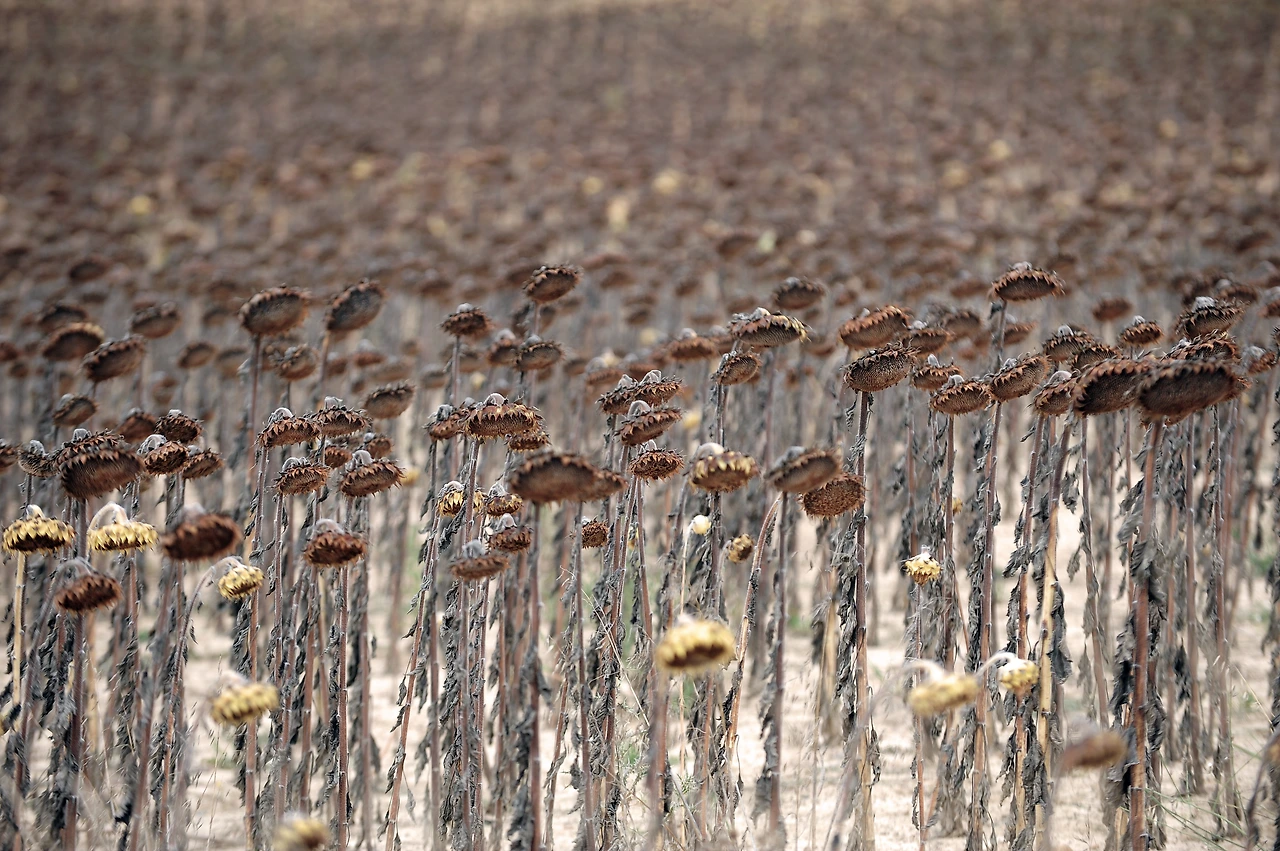 가을이 저무는 무렵 순례자의 길을 걷다 만나는 광활한 해바라기 밭.