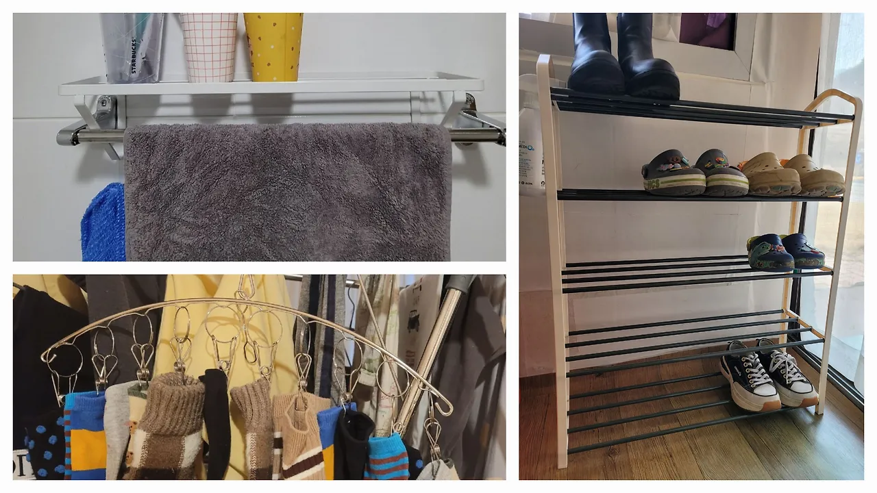 중형 옷걸이 하나를 3.5인 가족이 쓰려니 이틀에 한 번은 빨래를 해줘야 했는데요, 이때 빨래 건조대의 공간을 확보하는데 큰 도움이 되었어요.