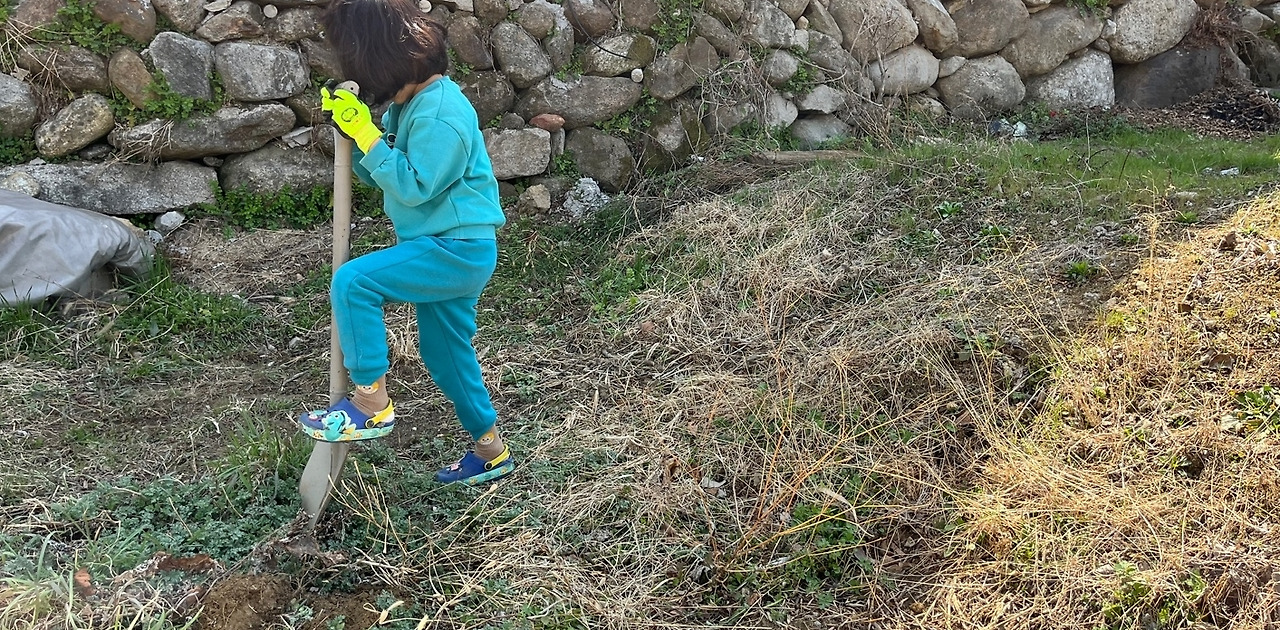 애미, 애비는 허리가 휘고 손가락 마디가 저린데, 아들내미는 아주 신이 났어요. 굼벵이를 모두 잡아 채집통에 모아두고(물론 다시 묻어 드렸습니다.) 잠이 덜 깬 개구리의 꿈벅거리는 눈에 까르르 넘어갑니다. 눈으로 배운 삽질도 제법 따라 하며 도와줬다 거드름도 피우네요.