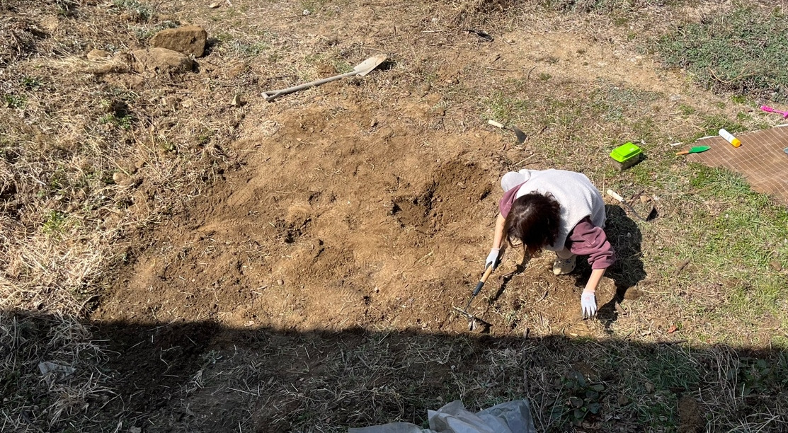 원래 땅 속에는 돌이 그렇게 많은가요? 박혀 있는 돌을 파내니 담장을 쌓을 수도 있겠어요.