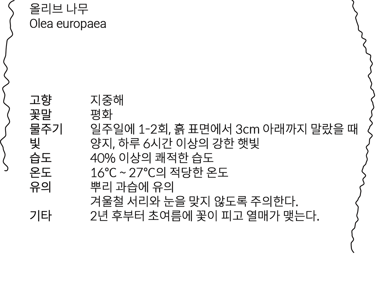 올리브가 죽었습니다. 올리브에게, 올리브를 선물해준 친구에게, 여러분에게 죄송합니다. 물도 때맞춰 주고 햇빛도 잘 쐬 준 것 같은데 어느새 잎이 바싹해지더니 돌돌 말려들었습니다. 사진 한 장 찍어주지 못했는데 이유도 모른 채로 이렇게 쉽게 작별해야 하다니. 올리브와는 어떤 추억도 쌓지 못하였습니다. 그래서일까 슬픔이 그리 크지 않다는 것에 더 미안한 마음이 듭니다. 올리브의 꽃말은 평화입니다. 올리브와의 에피소드를 얘기하지 못하는 대신 나의 평화의 순간들을 몇 조각 나누어 드릴게요.