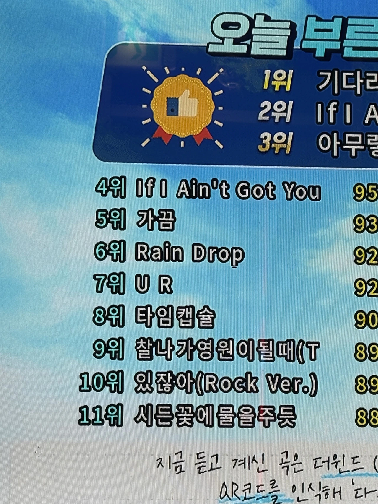 9위랑 11위 빼고는 내가 부를 노래들이고