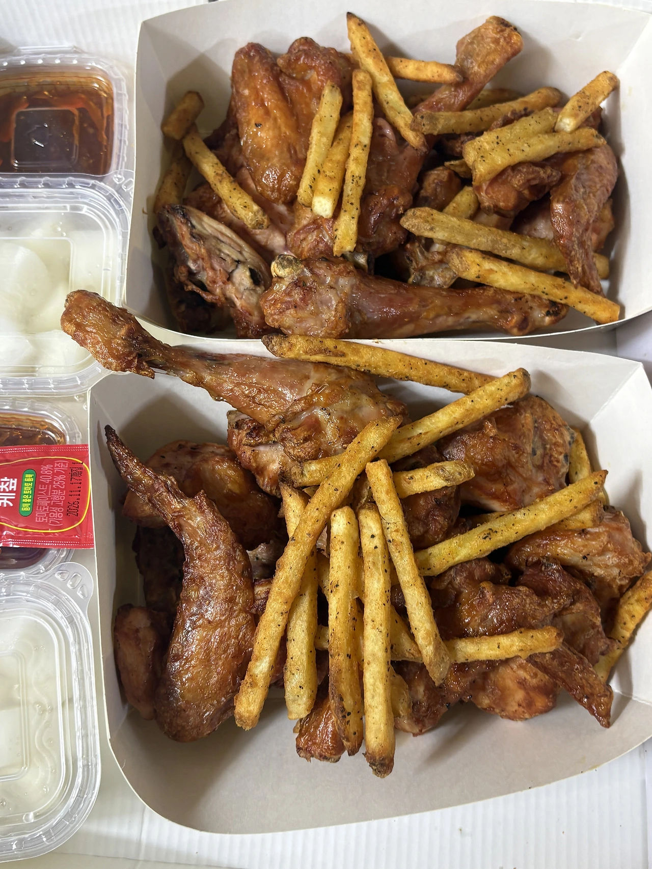 양념소스에 찍어서 감자튀김이랑 먹었다 감자튀김은