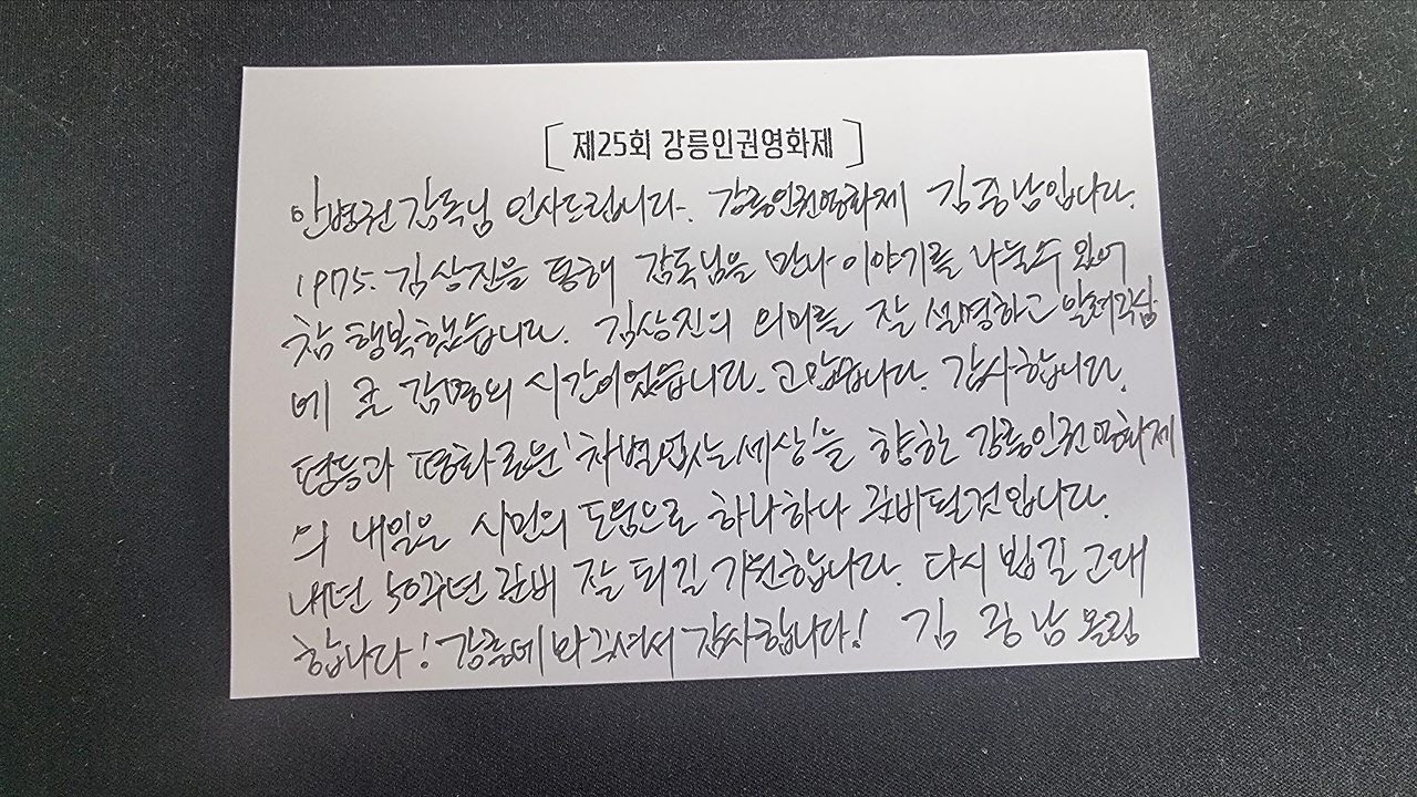 그 안에 김중남 강릉인권영화제 조직위원장의 손편지.