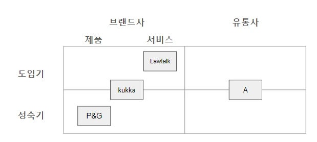 '판매하는 상품'보다 더 큰 영역으로, 내 사분면의 한 축을 '산업의 성격'으로 확장해서 새롭게 그려야 할 만큼, 비즈니스의 성격이 전혀 달랐다. 그렇게 사분면의 한 쪽 축을 산업의 성격에 따라 브랜드사, 유통사로 크게 나누고, 내가 새로운 영역을 배우고 있다는 것을 깨달았다.