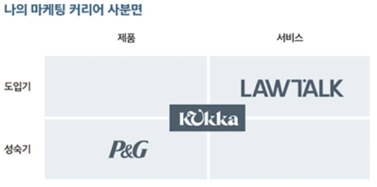 <그렇게 진짜 마케터가 된다>에서 내가 그동안 경험했던 회사들을 아래와 같은 사분면에 그렸었다. 판매하는 상품에 대한 한 축, 그리고 PLC (Product Life Cycle)에 대한 한 축으로 그렸는데, 이번에 이커머스, 유통사로 이직하면서 내가 그동안 겪었던 회사들은 모두 브랜드사이고, 내가 완전히 새로운 인더스트리를 경험해본다는 것을 깨달았다.