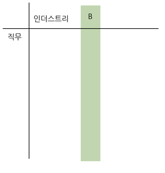 사람마다 겪어온 경험이 달라서, 나처럼 맨 왼쪽의 표처럼 '마케터'라는 직무에 꽂혀서 마케터만 된다면 어떤 인더스트리든 상관없겠다 싶은 사람도 있고, 직무는 모르겠지만 '항공사'에서 꼭 일해보고 싶다든지, 정년 보장이 상대적으로 잘되는 '공기업'으로 가겠다며 인더스트리를 정해놓고 직무는 열려있는 사람들도 있을 것이다. 또 드물 수는 있지만, 처음부터 하고 싶은 직무와 가고 싶은 인더스트리가 명확한 사람도 있을 수 있다. 내 주변에는 화장품 덕후면서 마케팅에 관심이 많아서 나는 무조건 화장품 회사 마케터로 일 시작한 다 처럼 취업준비 초기부터 명확한 목표를 가진 친구들도 있었다.