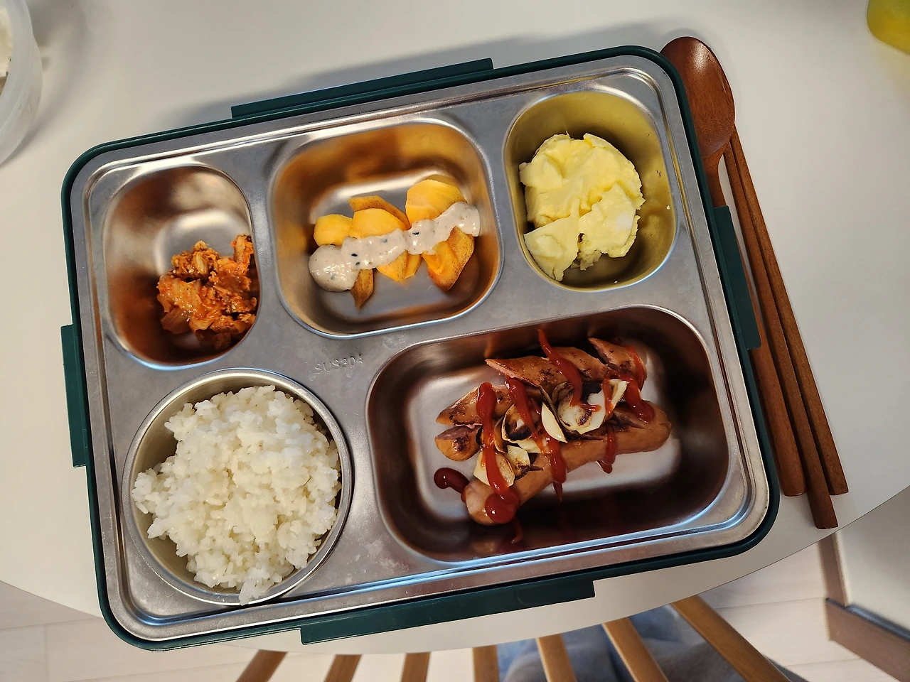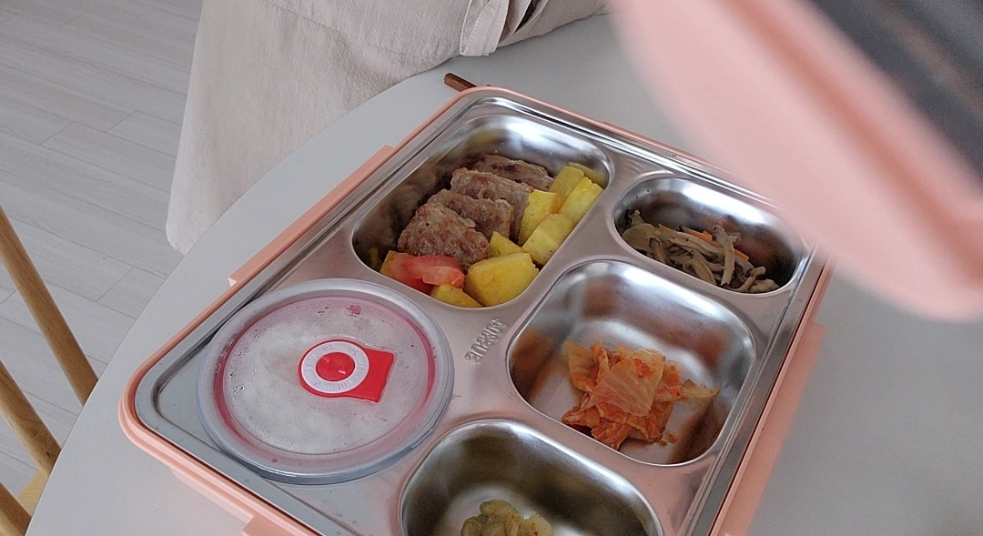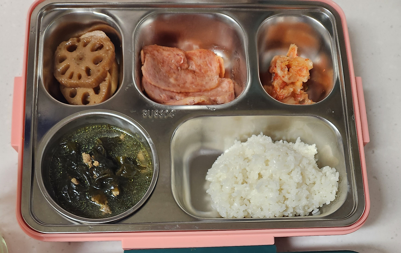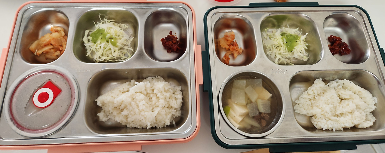 이 날은 뚜껑 있는 국 용기에 밥을 담았고