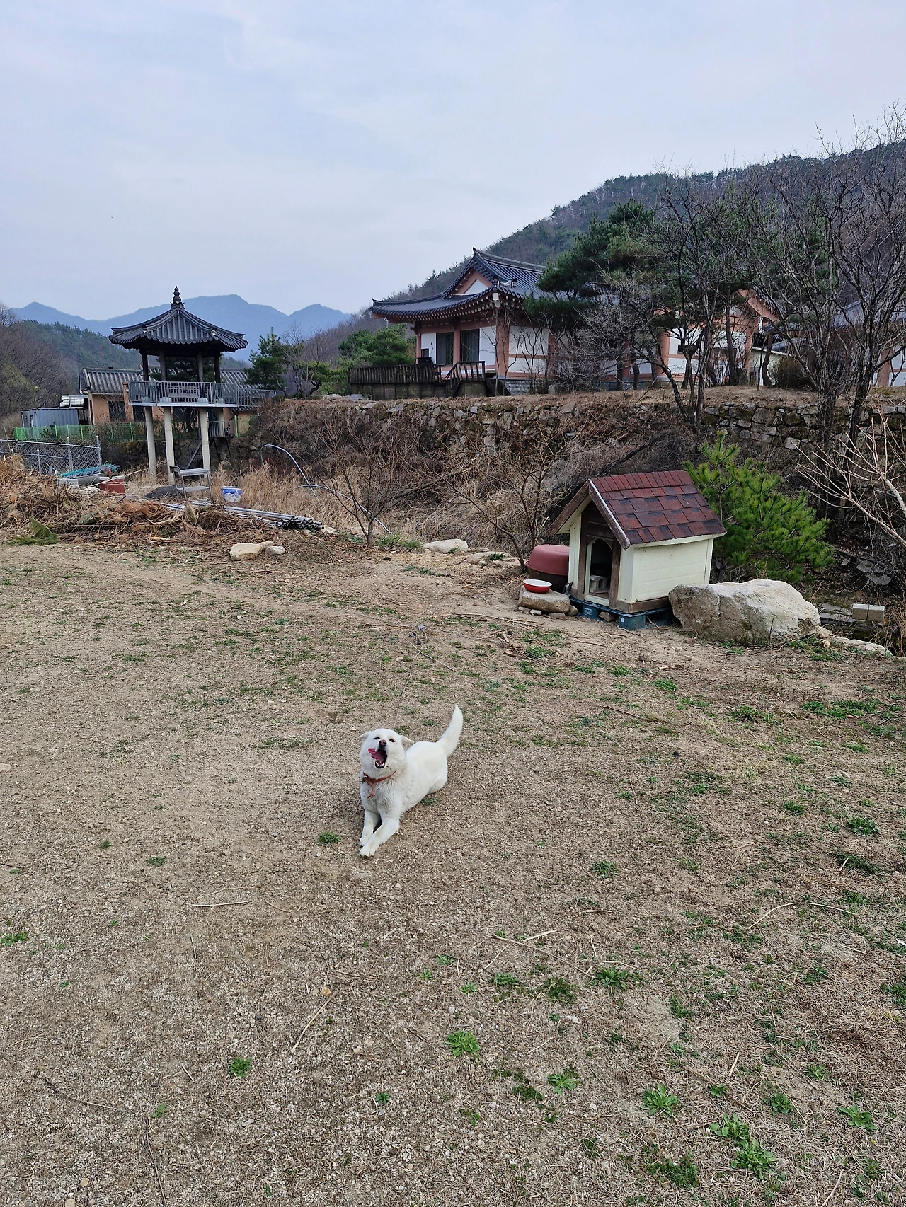 병풍처럼 둘러쳐져 있는 산들과 계곡을 따라 흐르는 물은 오래된 풍경을 바라보듯 마음이 편안해진다. 정원의 진돗개 한 마리가 반갑다며 혀를 길게 내밀고 꼬리를 흔든다. 그 기분 좋은 환대 앞에서, 처음 오는 이곳이 왠지 낯설지 않다는 기분이 드는 건 왜일까.