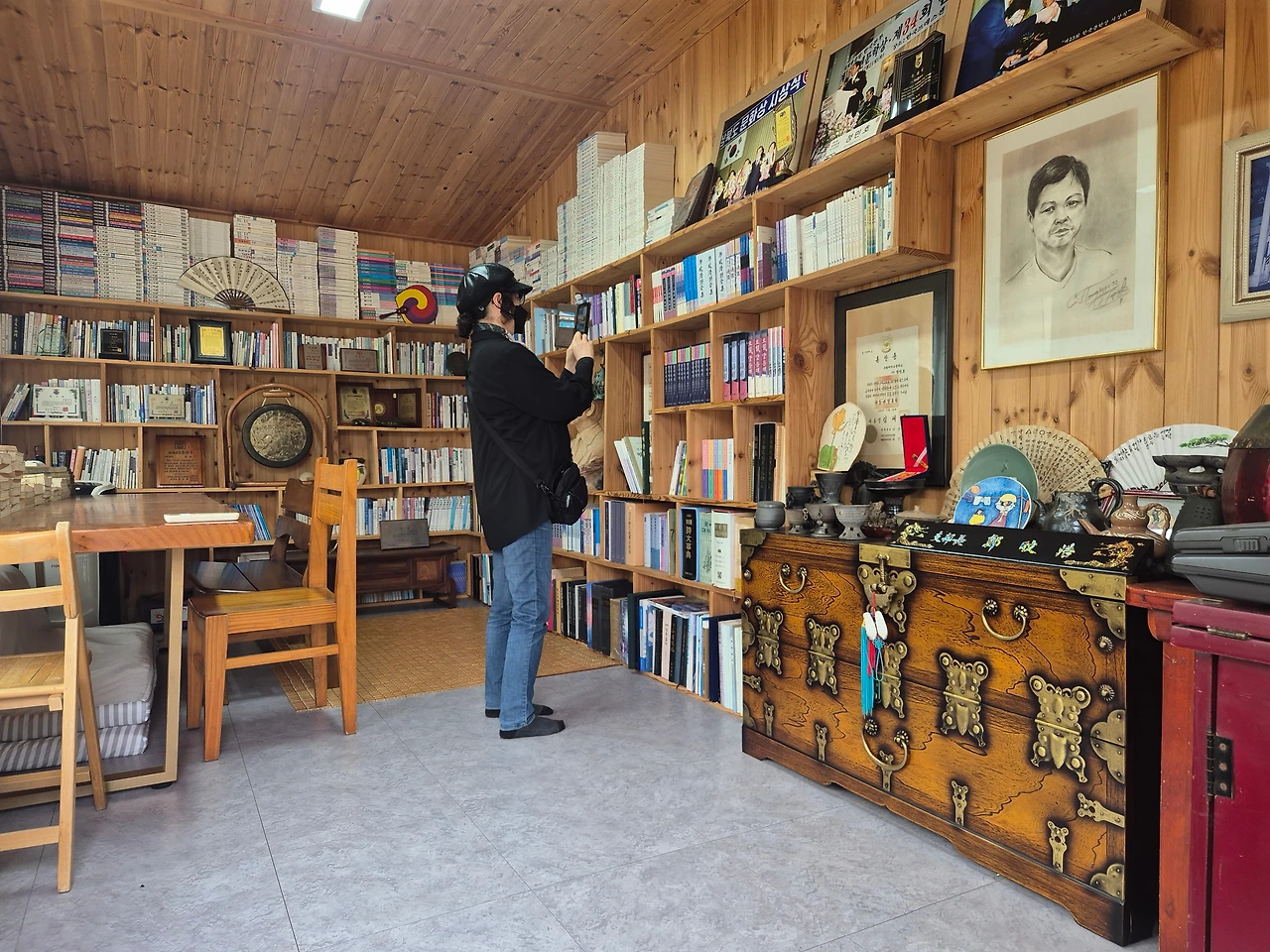 나무를 심은 후, 원장님의 모든 발자취를 모아두신 책방에 들어가 책들을 천천히 들여다보았다. 한 권 한 권이 쌓아 올린 시간들 속에서, 말보다 오래 남는 것이 무엇인지 새삼 생각하게 된다. 그 사이사이로 설명할 수 없는 감정들이 잔잔히 스며든다.