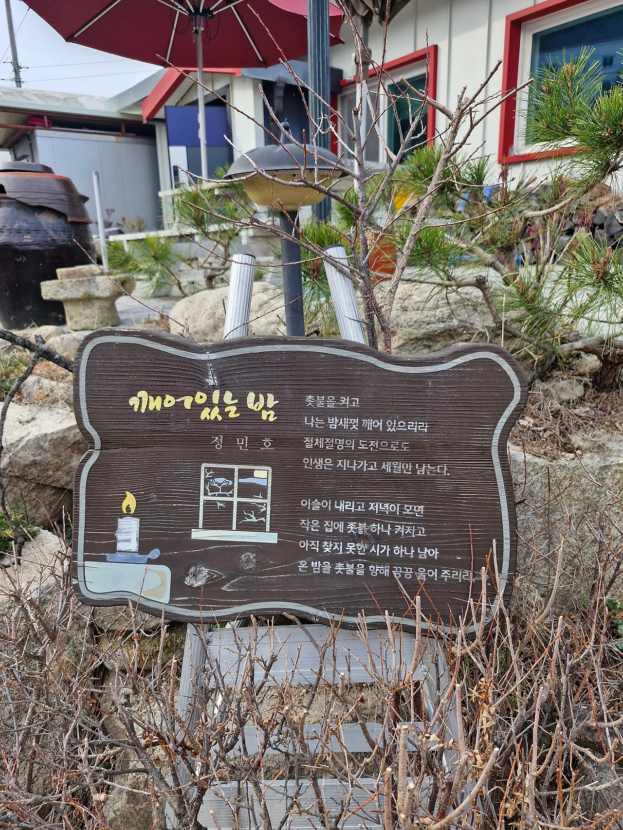 문학정원을 모두 둘러본 후, 정민호 원장님의 따님 부부께서 미리 예약해 놓은 꽃봉오리 식당으로 자리를 옮겨 점심 겸 저녁을 함께 먹었다. 맛있는 명품 오리주물럭과 맥주 한 잔에 기분 좋은 웃음이 오고 갔다. 내 마음 한켠은 여전히 문경의 바람 속을 이리저리 맴돌고 있다.