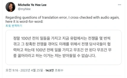 워싱턴포스트 미셸 예 희 리 기자의 트윗글