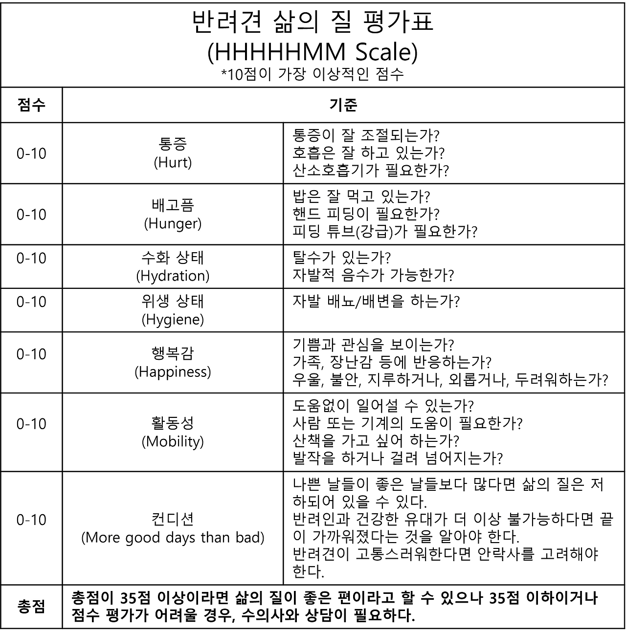 가장 중요하게 고려해야 하는 것은 현재 반려견의 삶의 질이다. 반려견의 고통이 지속적이고 더 이상 나아질 수 없다면 반려견의 고통을 중단하기 위한 결정을 해야 한다. 2004년 Alice villalobos가 제안한 반려견의 삶의 질 평가표가 있다. 평가표를 토대로 객관적으로 반려견의 삶의 질을 평가하는 것은 안락사를 결정하는데 도움이 될 것이다. 또한 안락사 프로세스에 대한 이해가 필요하다. 안락사의 진행 과정은 동물병원마다 차이가 있을 수 있다. 일반적으로 수의사가 진행하며 수의사가 반려견의 상태를 확인한 후 반려견의 고통을 줄여주고 진정을 위해서 수면마취제를 투여한다. 수면마취 상태에서 심정지를 유도하는 주사제를 투여하여 심장의 기능이 멈춤을 확인한 후 사망선고를 한다. 반려견의 건강상태에 따라 정상적으로 마취제를 사용하더라도 안락사에 이르기까지 반려견이 고통을 호소할 수 있음을 숙지하고 있어야 한다. 안락사를 선택했다면 반려견을 위로하고 마지막 순간이 편안할 수 있도록 도와야 한다. 안락사 후에는 반려견의 죽음으로 인한 슬픔을 극복하기 위해 노력해야 한다. 다른 가족 구성원들과 슬픔을 공유하고, 더 나아가 전문가의 도움을 받을 수도 있다. 슬픔을 극복하는 또 다른 방법으로는 반려견을 충분히 추모하고 추억을 공유하는 방법도 있다.
