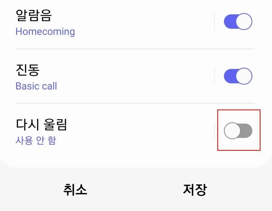 참고로 이 글을 쓰면서 나도 처음 확인했는데, '5분 후 다시 알림' 기능은 설정에서 비활성화할 수 있다.