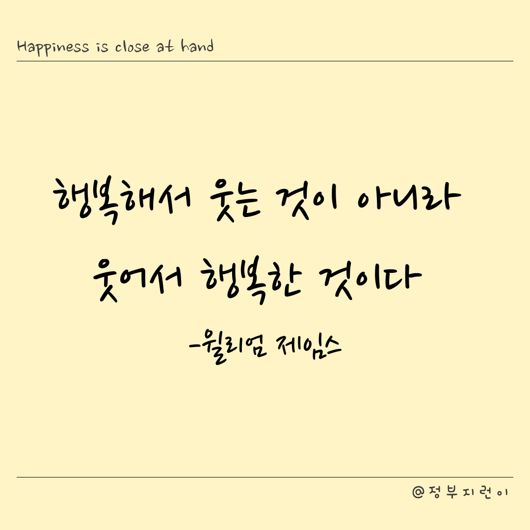 행복해서 웃는 것이 아니라 웃어서 행복한 것이다