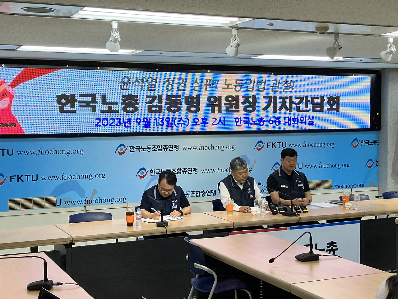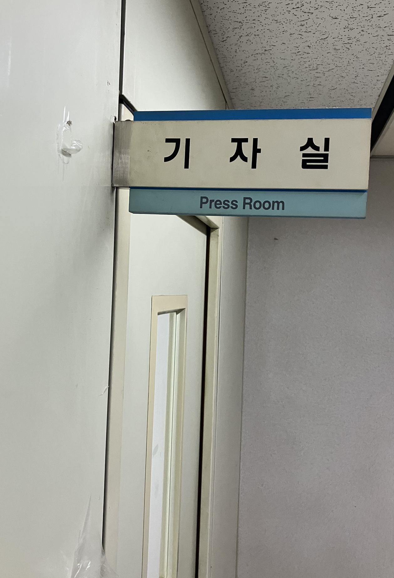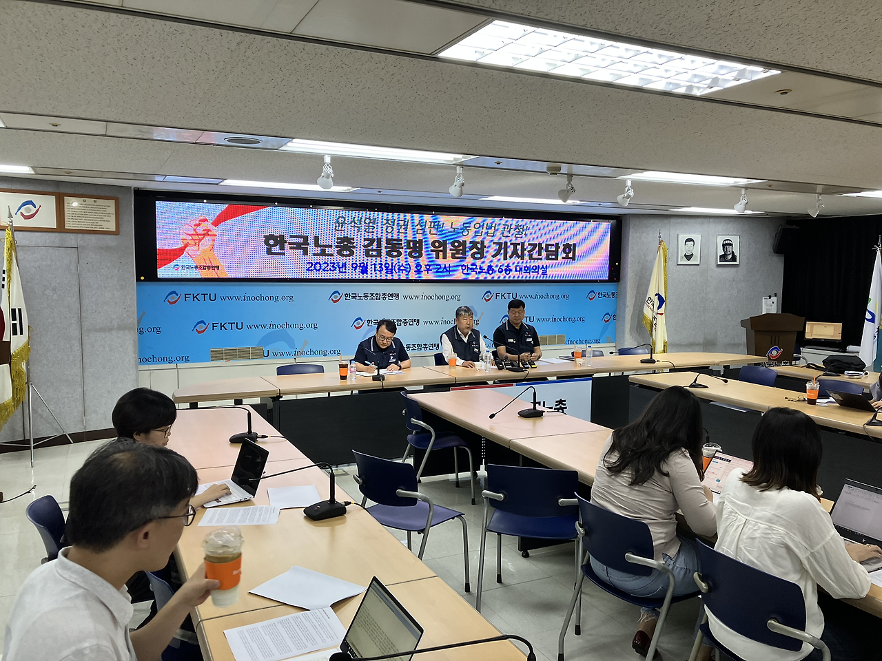 대회의실이 기자실 옆에 있어서 기자실에서 간담회 준비를 하고 바로 들어가기 편했습니다.