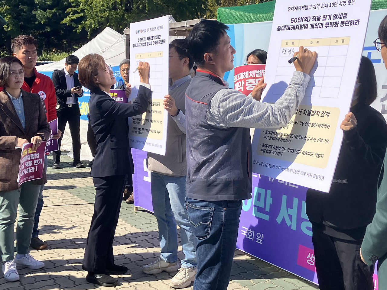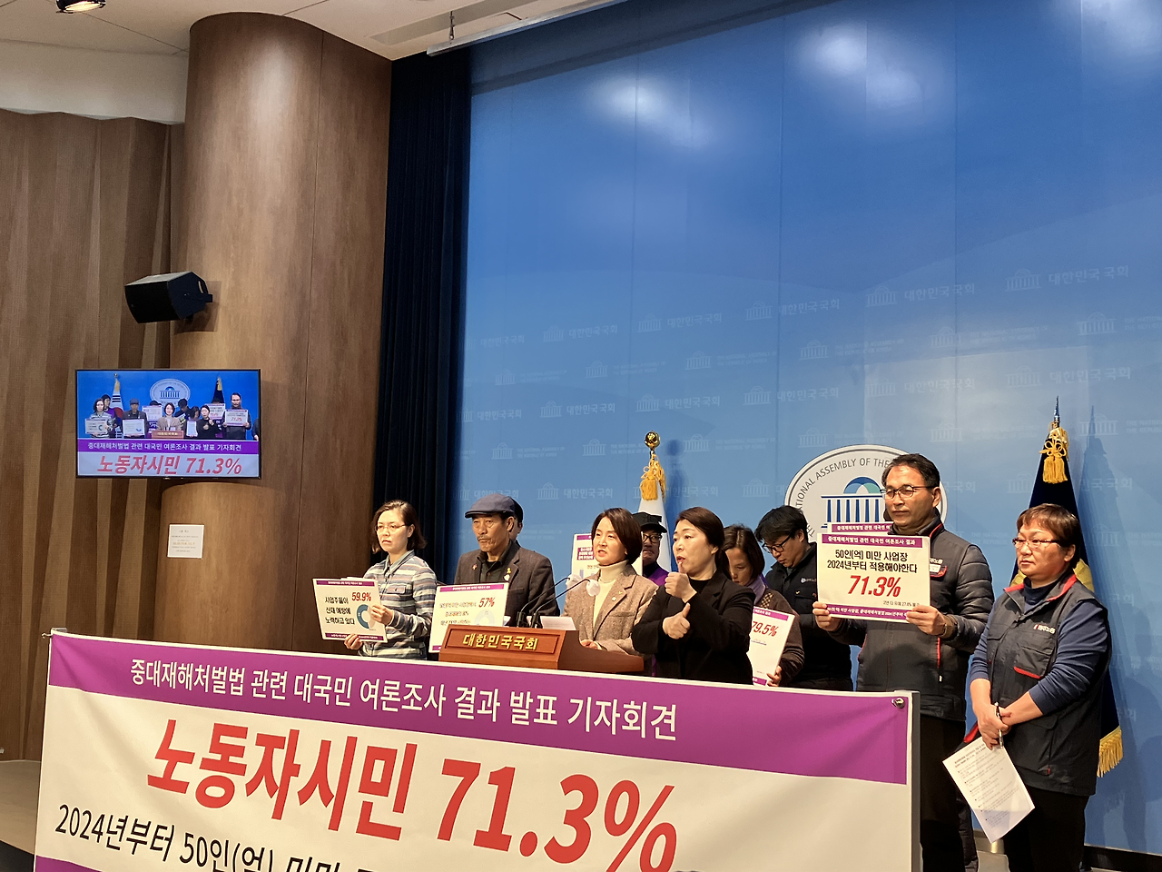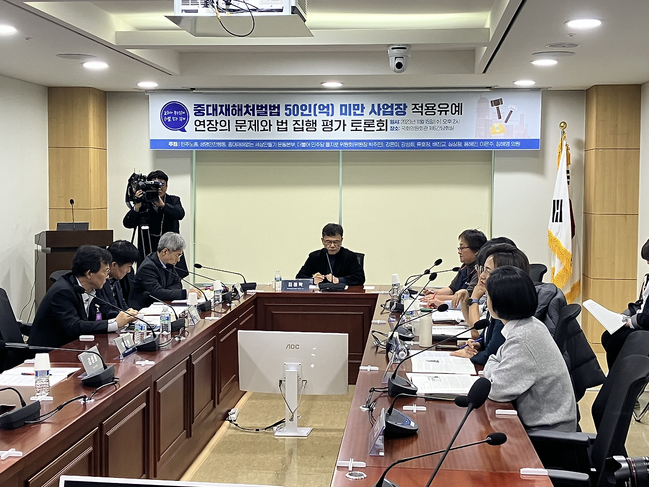 노동계는 산재 대부분이 발생하는 50인 미만 사업장에 법 적용을 유예해서는 중처법의 효과가 제대로 나올 수 없다는 입장입니다.