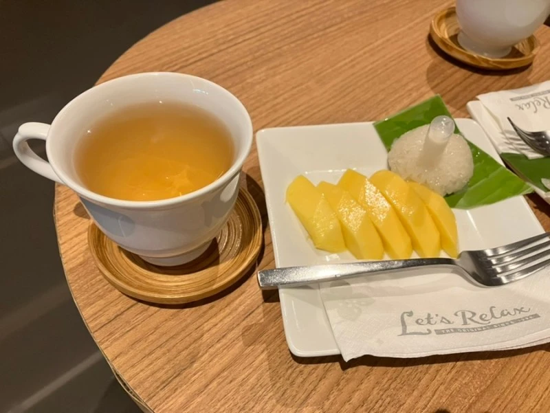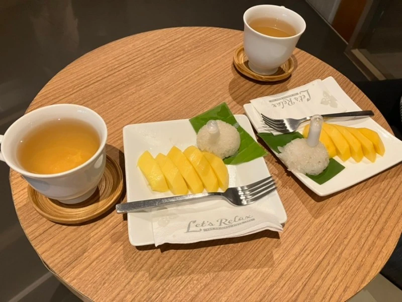 타이 마사지를 받으러 같을 때 후식으로 나왔던 망고찹쌀밥입니다.