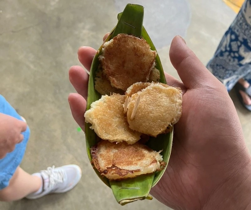 수상시장의 독특한 디저트 중 하나가 코코넛 부침개인데요. 가이드님이 하나씩 사주셔서 먹었는데 정말 매력적인 디저트였습니다.