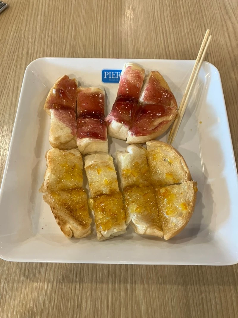 사실 특별한 것은 별로 없는 디저트에요. 식빵에 다양한 잼을 발라주는 디저트입니다.