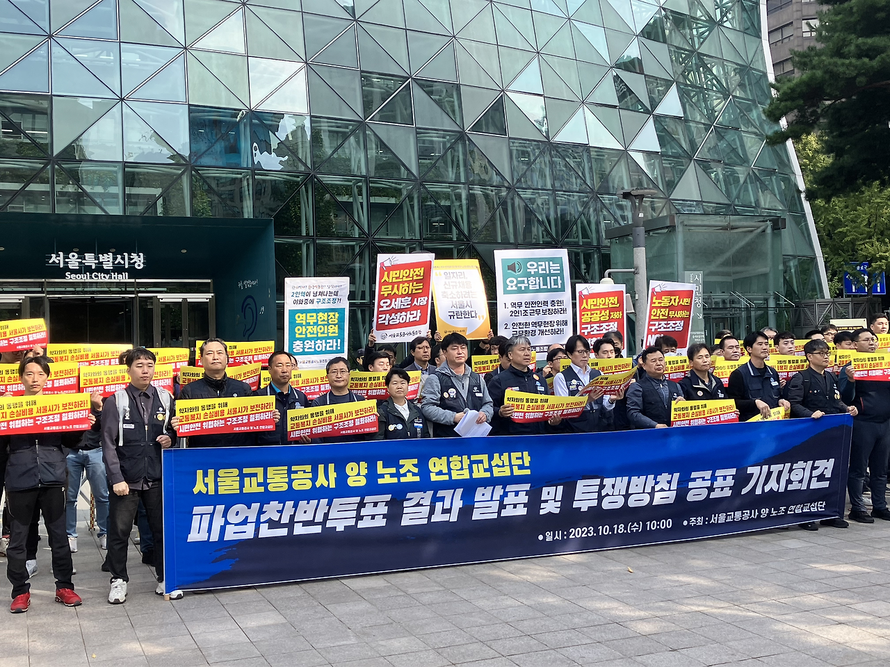 이 과정에서 올바른 노조는 빠지고, 파업 선포 기자회견에는 민주노총 서울교통공사노조와 한국노총 서울교통공사통합노조만 참여합니다.
