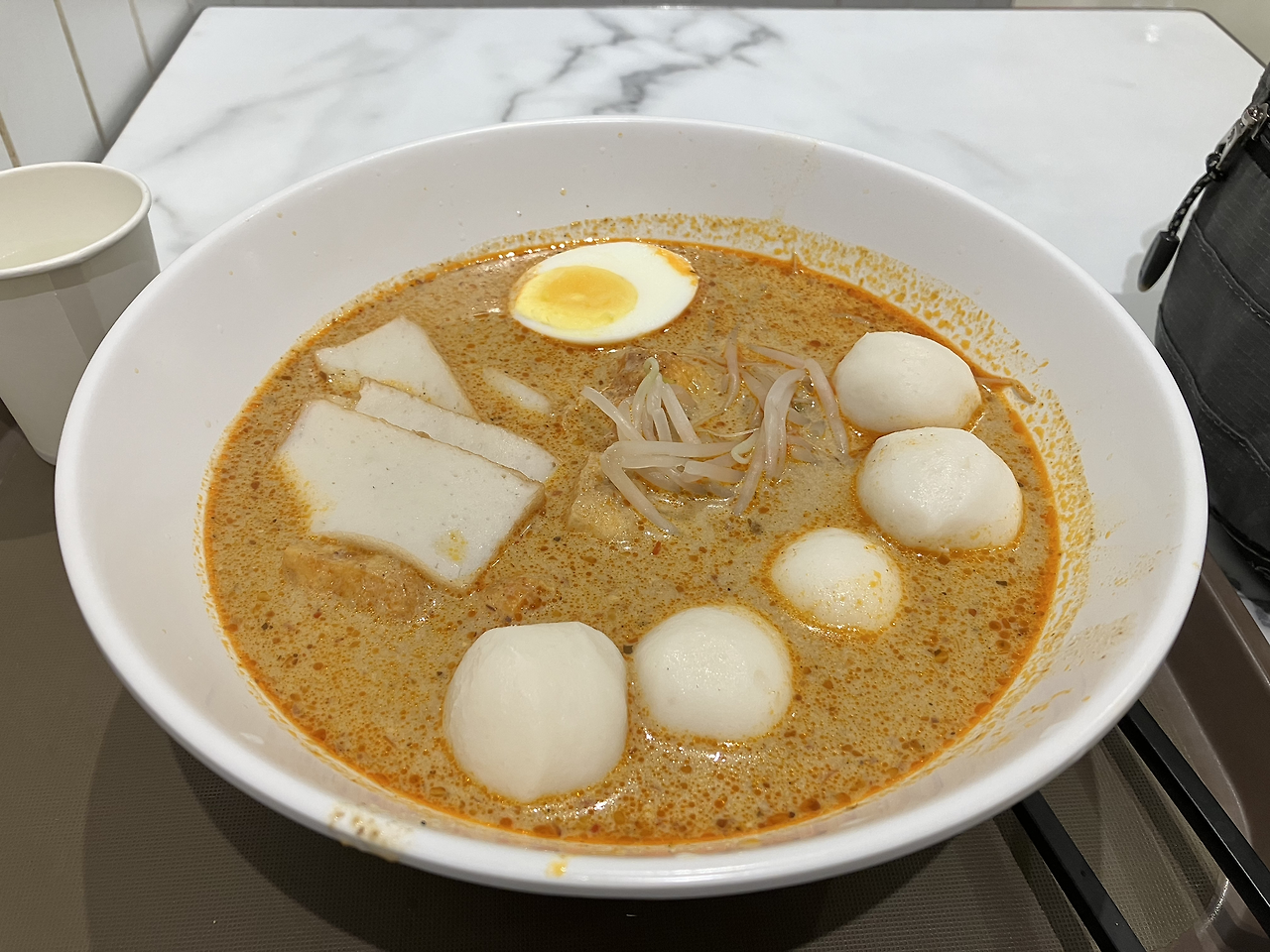 면은 라멘 면과 비슷하고 국물에 피쉬볼, 계란, 숙주와 함께 나오는데 한국인 입맛에 잘 맞고 맛있었습니다.