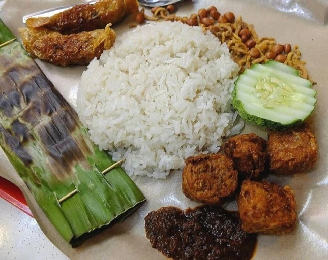 나시 르막은 말레이시아 음식으로 코코넛 밀크로 지은 밥에 각종 튀김류를 함께 먹는 것을 말합니다.