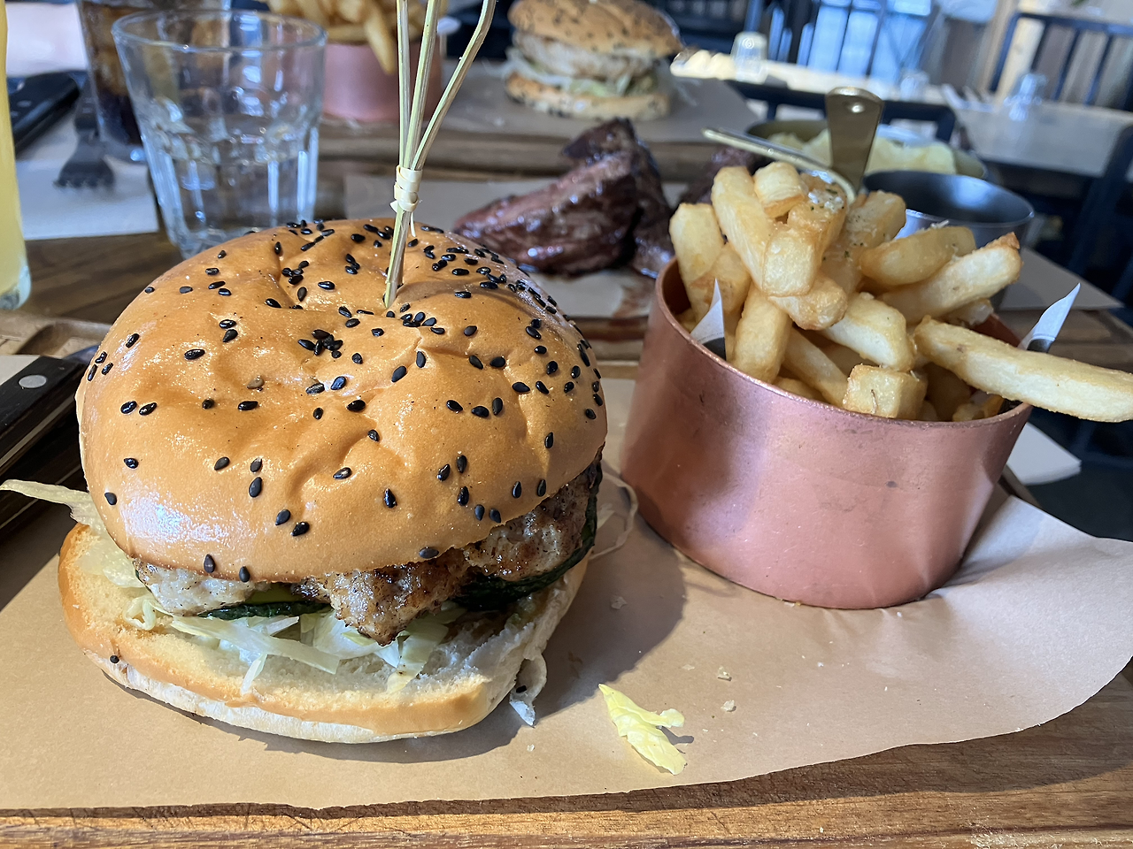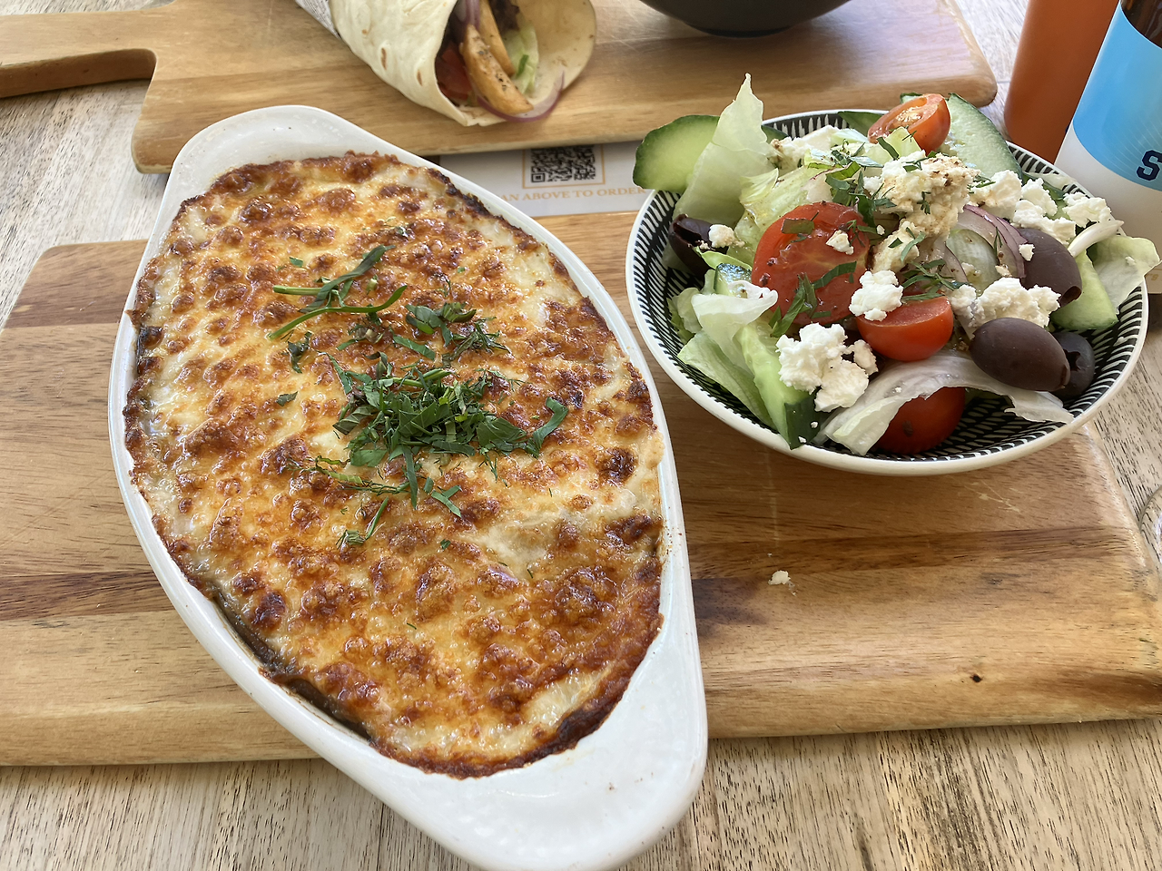 치킨 파마지아나와 함께 미트 파이는 꼭 드셔보세요. 아, 아사이보울까지요!
