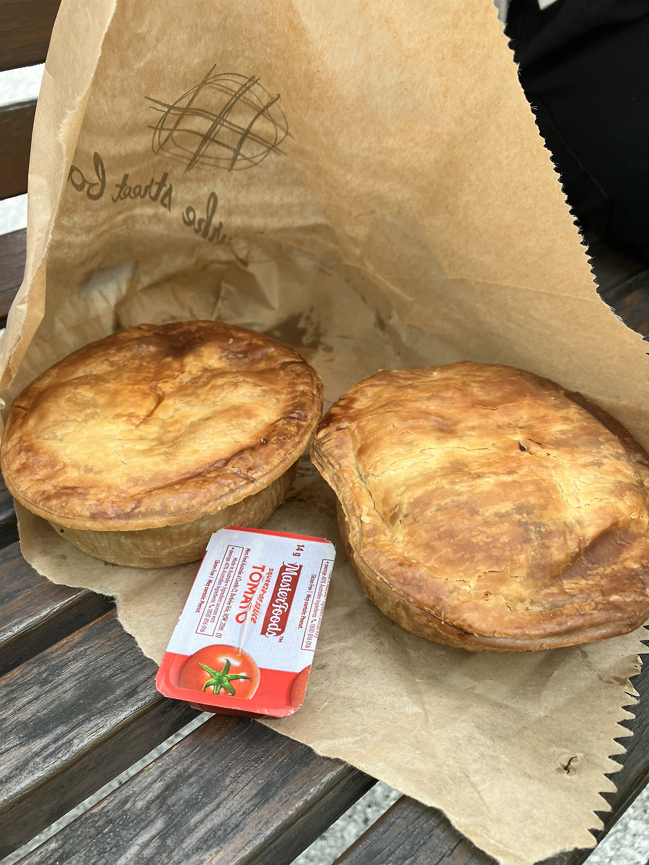 갓 만든 미트 파이를 먹으면 정말 맛있어요. 바삭한 빵을 씹으면 안에 토마토 소스를 한 고기가 왕창 씹히는데 최고입니다.