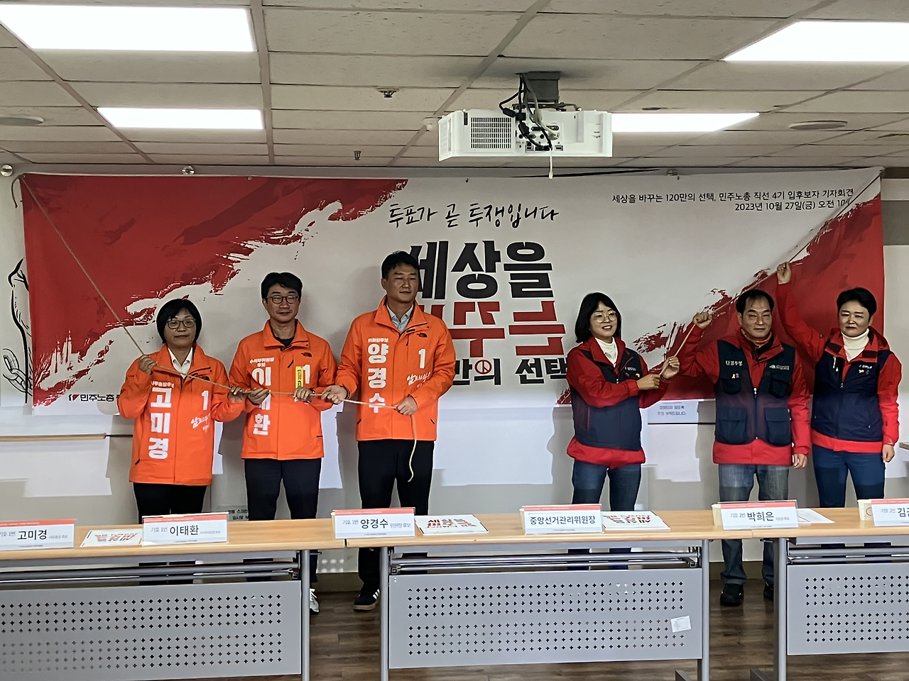 이번 민주노총 11기 집행부 선거(위원장, 수석부위원장, 사무총장)는 직선 최초 재선 위원장이냐 여성위원장이냐의 대결로 관심을 모았습니다.