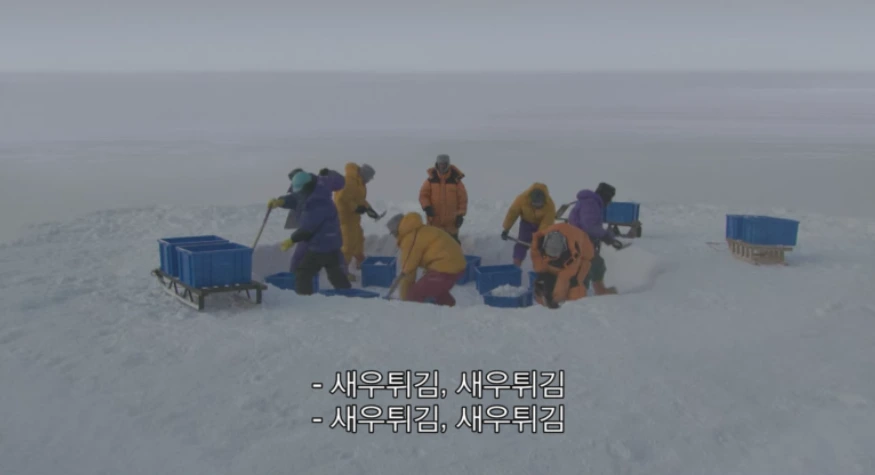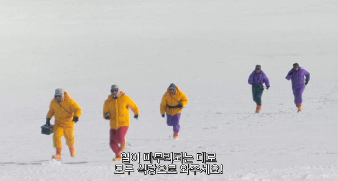 니시무라는 쉐프답게 매일 맛있는 요리를 준비하는데 대원들도 매일 그가 만든 맛있는 음식을 기대하며 남극의 기지 생활을 버텨낸다. 하지만 더 재밌는 건 다양한 직업군의 사람들이 모여있는 만큼 캐릭터 하나하나가 다양한 성격을 가지고 다양한 말과 행동을 한다. 그런 독특한 캐릭터들이 제한된 공간에 모여있다 보니 다들 원초적인 모습을 공유할 수밖에 없어서 웃긴 장면들이 탄생한다. 또 일 년 반이나 가족과 떨어져 아무것도 살아있지 않은 기지에 박혀있다 보니 가족에 대한 그리움과 사랑도 그려지고 대원들끼리 서로 챙기며 그야말로 인간적인 모습을 많이 발견할 수 있다. 웃기고 감동적이고 예쁜 걸 혼자서 다하는 영화다.