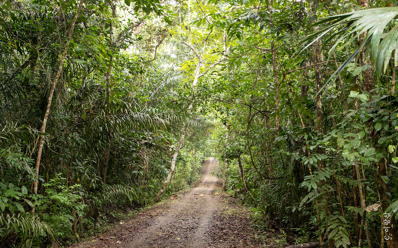 숲 속에서 소리가 들렸다. 우리는 발걸음을 멈추고 숨 죽이고, 뒤덮힌 초록의 사이 사이를 분주하게 훑어봤다. 숲 속 미지의 존재는 자신이 주시받고 있단 걸 아는 듯 한 번의 실수 이후 침묵했다. 우리는 성과 없이 시선을 길로 돌렸다. 하지만 촘촘하게 우거진 밀림이 그들을 가려주는 만큼 길 위의 우리, 인간이 의존해야 할 우선의 감각은 청각이었다.