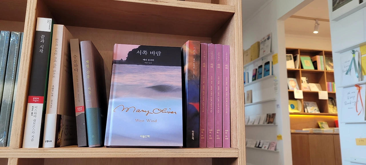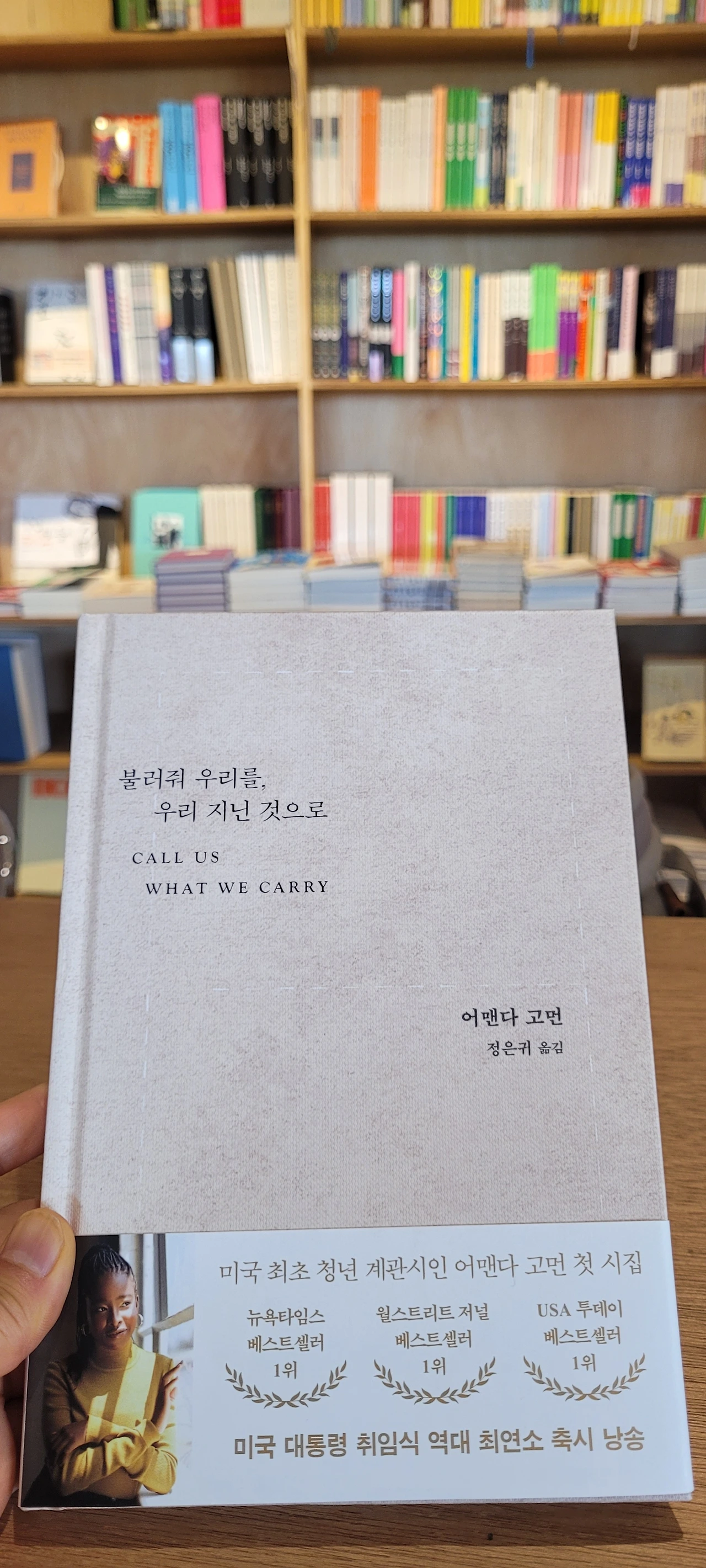 몇 년 전에 왔던, 이곳 종달리 소금밭의 '소심한책방'은 더 이상 '소심한' 곳은 아니었다. 두세 평 남짓 되던 공간은 이제 그 열 배나 된 듯하다. 그럼에도 주인장은 여전하시다. 그때도 쉼 없이 드나드는 손님들 아랑곳하지 않고, 자기 일에 빠져 계셨는데, 지금도 무언가에 집중하고 계신다. 그 일이 책방 일과는 상관없어 보여, 좋았다. 그사이 나는, 여행지까지 와서 책까지 사기에는 돈이 아깝다 생각했던 사람에서, 이젠 여행지에 오면 기꺼이 동네서점을 찾고, 그곳에서 반드시 책을 사는 사람으로 바뀌었다. 책방을 둘러본 딸이 바로 책을 집어든다. 학교 도서위원회 친구들이 추천한 책이라며, <우리 반 애들 모두가 망했으면 좋겠어>를 구입했다. 테이블에 앉아 읽기 시작한 딸 주변을 맴돌며, 나도 나를 기다리고 있을 책을 찾아 나섰다. 요즘 핫한 유시민 작가의 <문과 남자의 과학 공부>에 잠시 마음이 기울었지만, 결국 내가 고른 책은 어맨다 고먼의 <불러줘 우리를. 우리 지닌 것으로>라는 시집. 이 책은 비스와바 쉼보르스카와 메리 올리버 시집 사이에 꽂혀 있었다. 아마도 짐작건대, 주인장은 이 '어맨다 고먼'을 '비스와바 쉼보르스카'와 '메리 올리버'와 견주어도 전혀 뒤지지 않을 시인으로 생각하나 보다. 책을 펴서 몇 편의 시들을 훑어보고 알았다. 그래. 주인장이 옳았다.