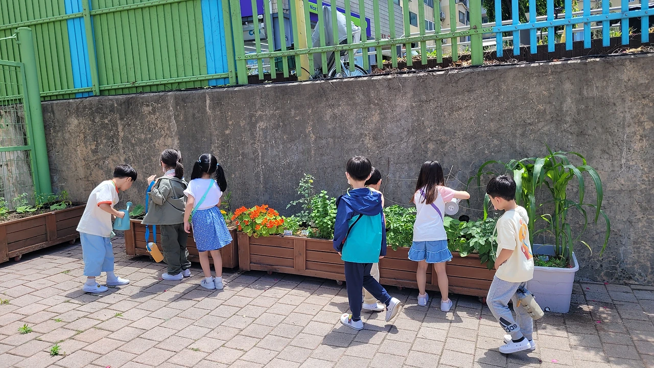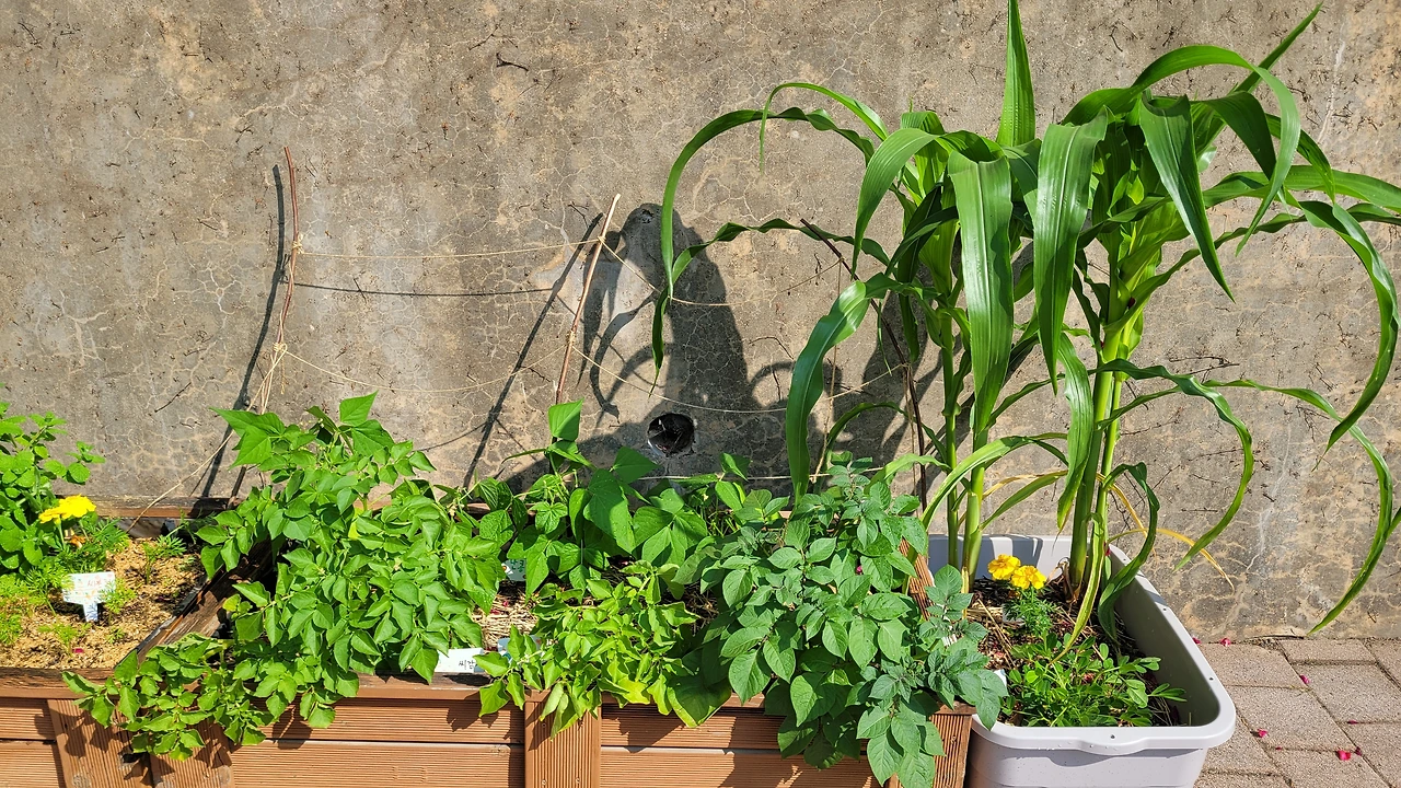 그렇게 힘들게 사수한 감자가 이제 수확할 때를 기다리며 잎이 노랗게 변해가고 있다. 살짝 흙을 걷어내니, 제법 크게 자란 감자들이 파묻혀 있다. 손 한 뼘만 하던 옥수수는 몇 주 전 우리 반 아이들 키만큼 크더니, 이제는 내 키를 훌쩍 넘어섰다. 손 한 움큼 양이던 한련화는 팔 한가득 가득 피었다.