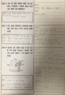 아이들은 문제지 가운데를 잘라 수학 팡팡팡 공책 여러 페이지에 붙인다. 이때 공책 왼쪽에 문제지를 붙이고 오른쪽은 빈 공간으로 남겨둔다. 아이들은 먼저 각자 문제지를 푼다. 그리고 모둠끼리 모여 협력학습을 한다. ‘거꾸로 수업’처럼 문제 하나하나를 다시 함께 해결한다. 각각 자기가 해결한 방법을 다른 아이들에게 설명한다. 아이들은 모둠 친구들의 해결 방법을 다 듣고 나서 가장 마음에 드는 해결 방법을 골라 공책의 오른쪽 빈 공간(문제지를 왼쪽에 붙이고 남은 오른쪽 빈 공책 공간)에 적으며 다시 공부한다.