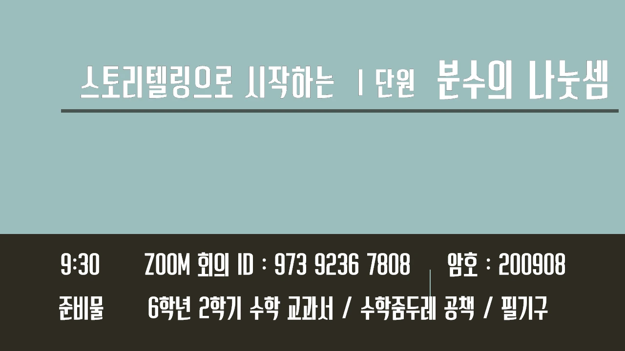 여름방학이 끝났다. 2주가 지나면 2학기 수학이 시작될 터였다. 아이들은 1학기 때처럼, 수학 1단원 '분수의 나눗셈'을 e학습터 영상으로 공부하고 수학익힘책을 풀고 과제를 올릴 것이다. 그러면 내가 그때그때 피드백을 해주고, 마지막 차시가 되면 ZOOM으로 애들을 불러 내가 준비한 문제지로 모둠 협력학습을 하게 하면 된다.