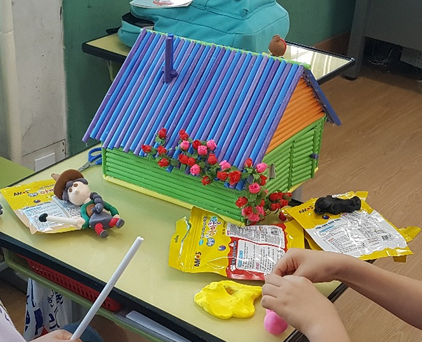 이탈리아 모둠은 지난 모둠 줌두레 때 세웠던 계획을 계속 수정하였다. 종이 애니메이션을 만들기로 했는데, 클레이 애니메이션으로 바꾸기로 했다. 캐릭터와 소품은 등교일에 교실에서 만든다고 아이들에게 안내했는데, 인후가 반칙을 했다. 입이 벌어질 정도로 멋진 수수깡 집을 집에서 만들어 왔다. 그 소품을 비중 있게 사용하고 싶어서인지, 계획을 바꾸어도 되는지 은우가 내게 물었다.